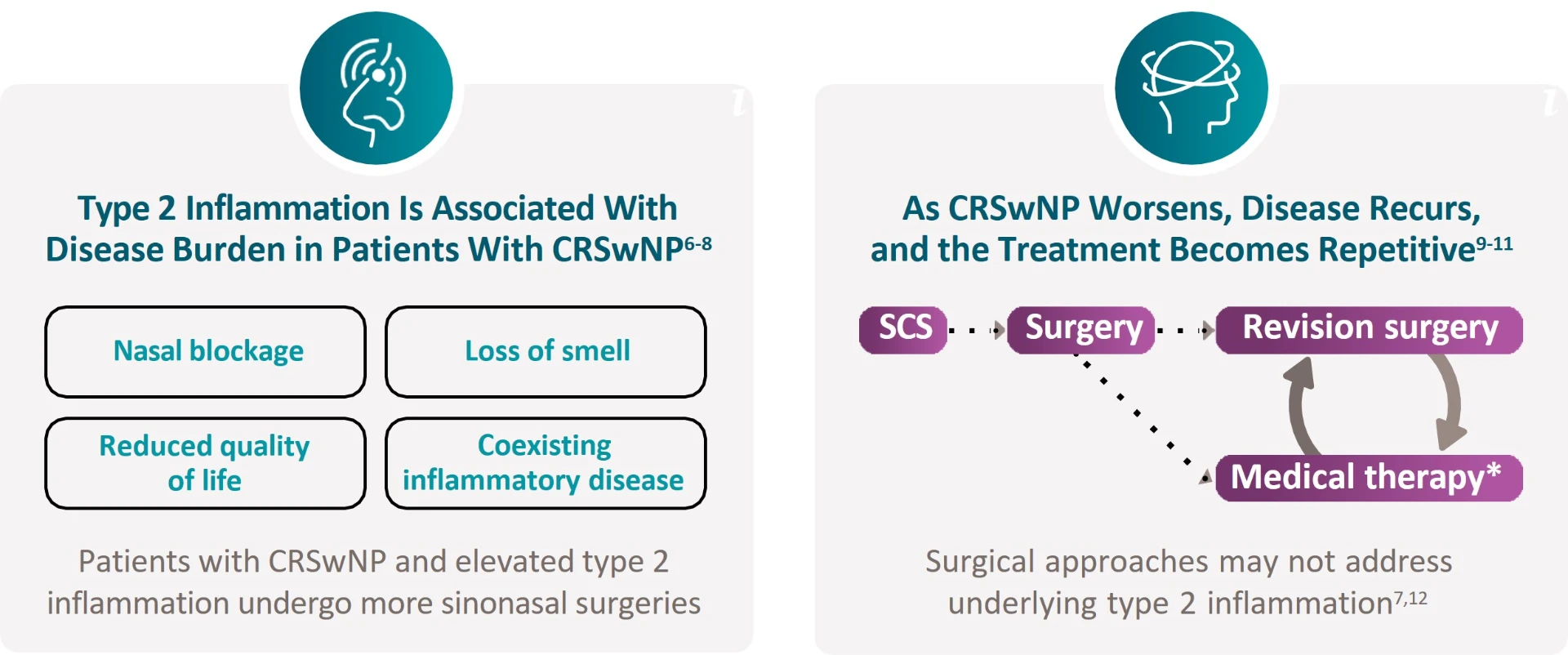 1. Stevens WW, et al. J Allergy Clin Immunol Pract. 2019;7(8):2812-2820.e3. 2. Orlandi RR, et al. Int Forum Allergy Rhinol. 2021;11(3):213-739. 3. Schleimer RP. Annu Rev Pathol. 2017;12:331-357. 4. Schleimer RP, Berdnikovs S. J Allergy Clin Immunol. 2017;139(6):1752-1761. 5. Soyka MB, et al. J Allergy Clin Immunol. 2012;130(5):1087-1096. 6. Turner JH, et al. Int Forum Allergy Rhinol. 2018;8(10):1175-1183. 7. De Corso E, et al. J Pers Med. 2022;12(8):1251. 8. Mullol J, et al. J Allergy Clin Immunol Pract. 2022;10(4):1086-1095.e5. 9. Fokkens WJ, et al. Rhinol Suppl. 2012;23:1-298. 10. Alobid I, et al. J Investig Allergol Clin Immunol. 2011;21 Suppl 1:1-58. 11. DeConde AS, et al. Laryngoscope. 2017;127(3):550-555. 12. Xian M, Zhang L. Allergy. 2023;78(3):623-625. 13. Bachert C, et al. Nat Rev Dis Primers. 2020;6(1):86.
