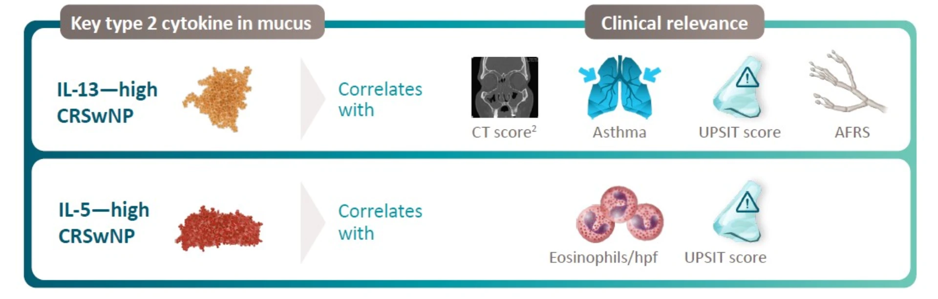 Key Type 2 Cytokines in CRSwNP1-6