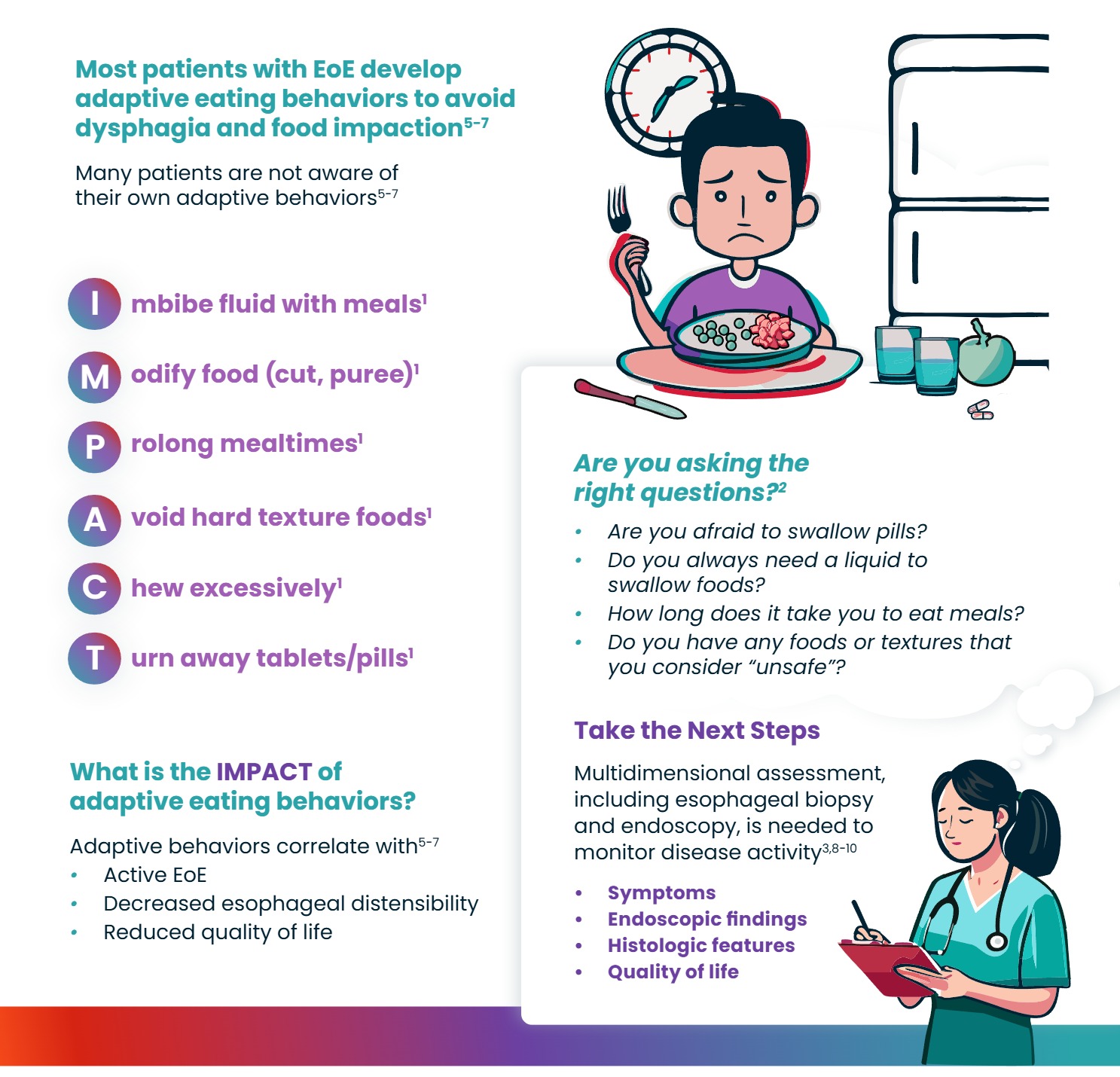 1. Hirano I, Furuta GT. Gastroenterology. 2020;158(4):840-851. 2. Muir AB, et al. Clin Exp Gastroenterol. 2019;12:391-399. 3. Lucendo AJ, et al. United European Gastroenterol J.2017;5(3):335-358. 4. Chang JW, et al. Dis Esophagus. 2022;35(6):doab073. 5. Schoepfer AM, et al. Gastroenterology. 2014;147(6):1255-66.e21. 6. Kennedy KV, et al. Am J Gastroenterol. Published online January 18, 2024. 7. Alexander R, et al. Clin Gastroenterol Hepatol. 2019;17(11):2371-2373. 8. COREOS Collaborators; Ma C, et al. J Allergy Clin Immunol.