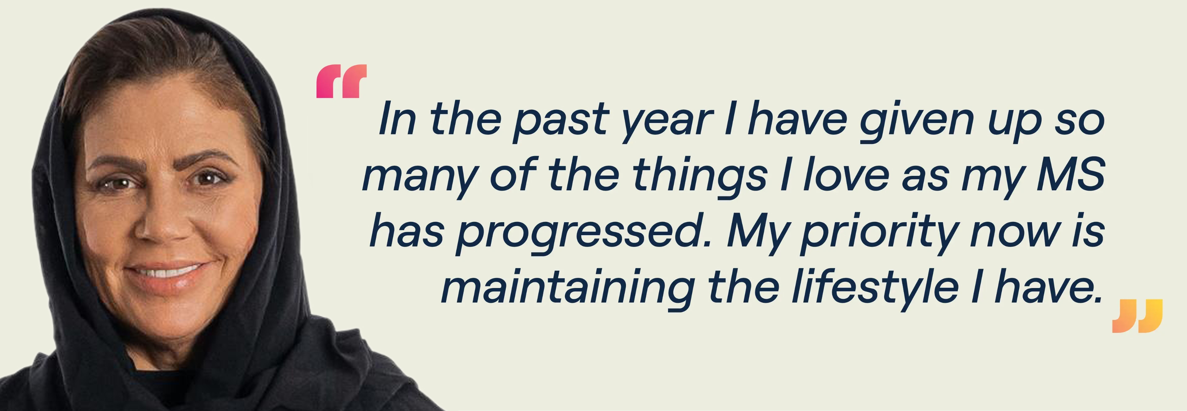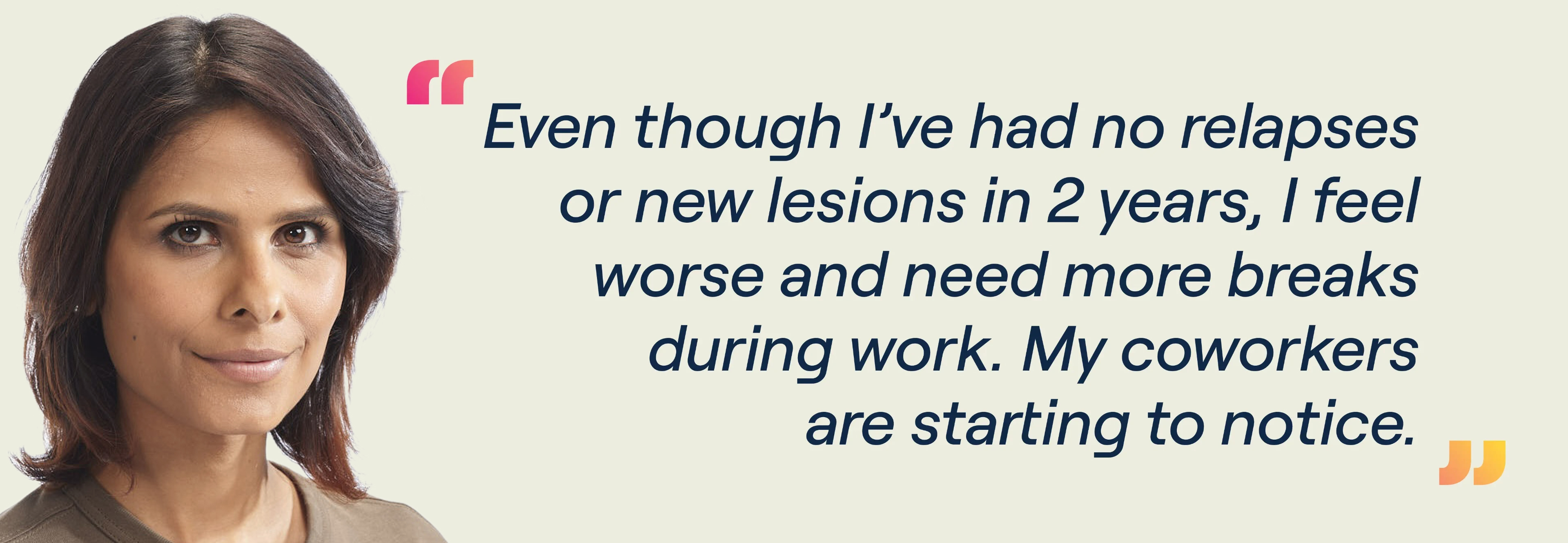 Level of disability: Moderate. Her EDSS Score is 4.5 and, despite no EDSS change, her symptoms have worsened in the past 12 months due to disability progression