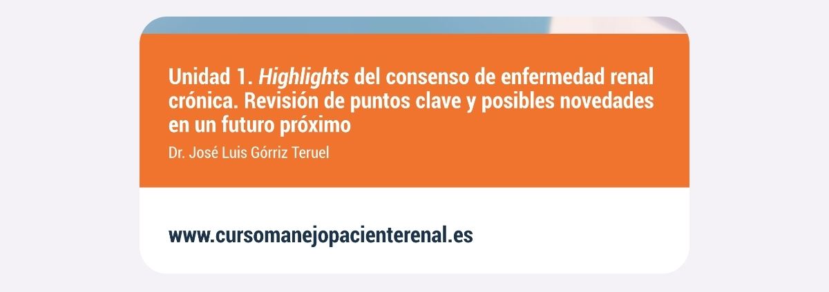Se he realizado un resumen de los aspectos con más implicación practica del mismo, incluyendo: la definición y el diagnóstico de la ERC, el estadiaje y el cribado, la definición de la progresión renal, los criterios de derivación a nefrología actualizados, la monitorización y el seguimiento de pacientes con ERC.