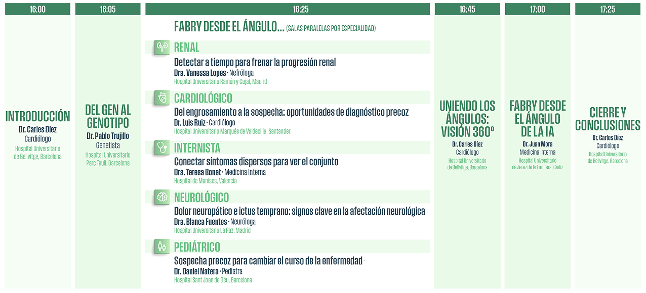 Una oportunidad para explorar Fabry desde una perspectiva multidisciplinar, enriquecer tu visión clínica y fortalecer la colaboración entre especialidades.