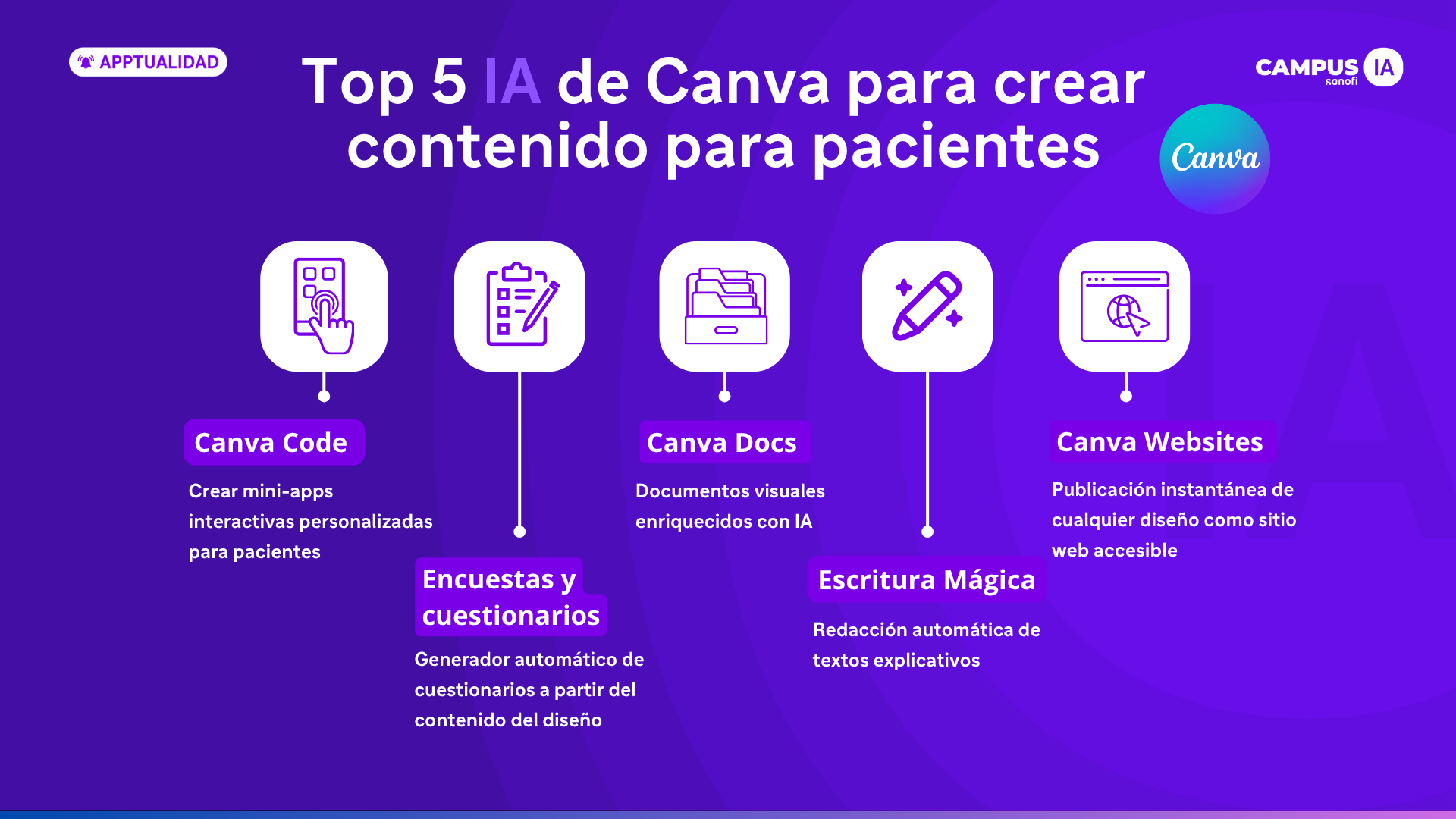 Top 5 funcionalidades IA de Canva para crear contenido interactivo para tus pacientes