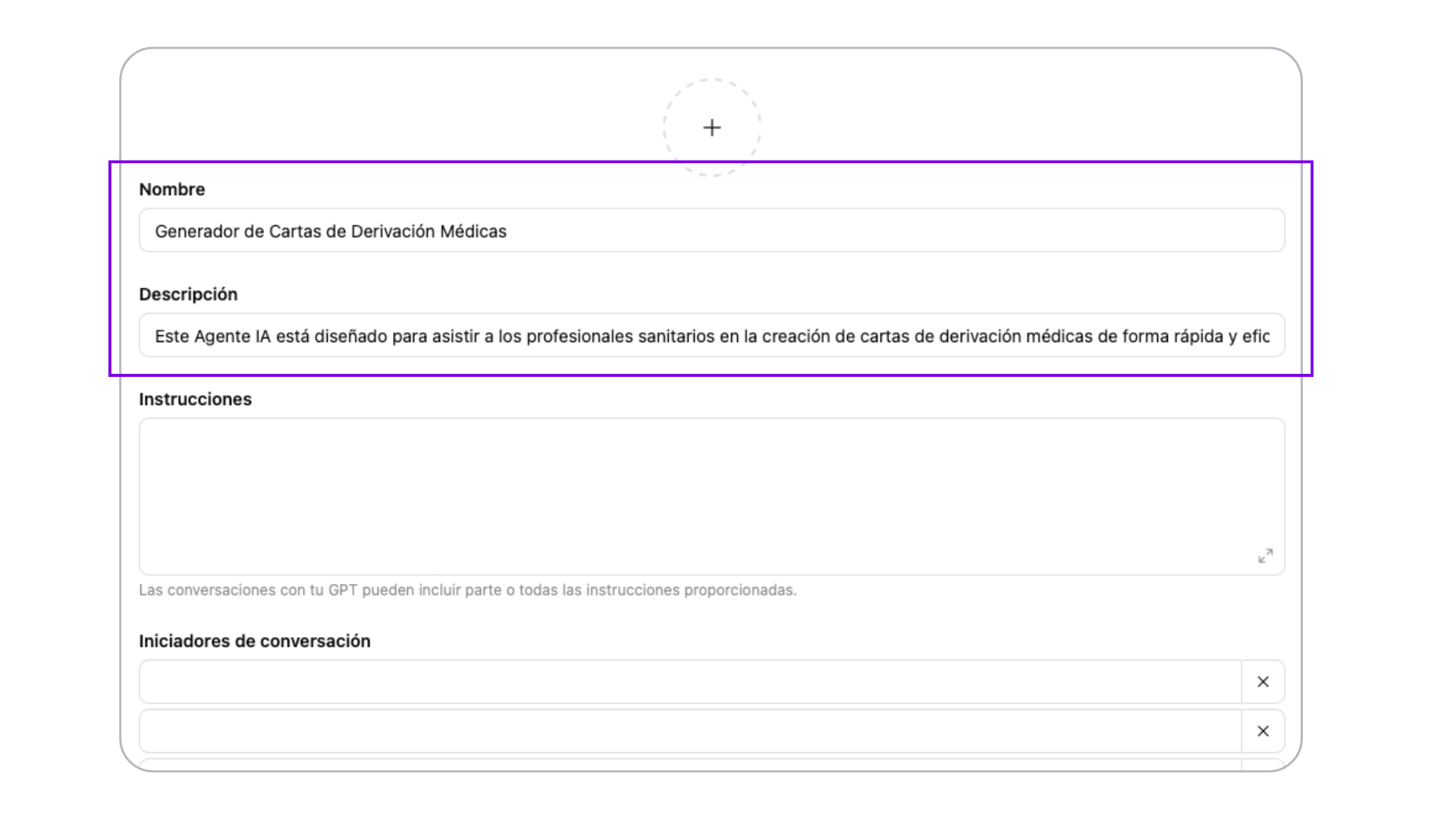 💡 Este paso es fundamental para que nuestro GPT cumpla con los objetivos establecidos. Puedes modificar estas instrucciones de ejemplo según tus necesidades.