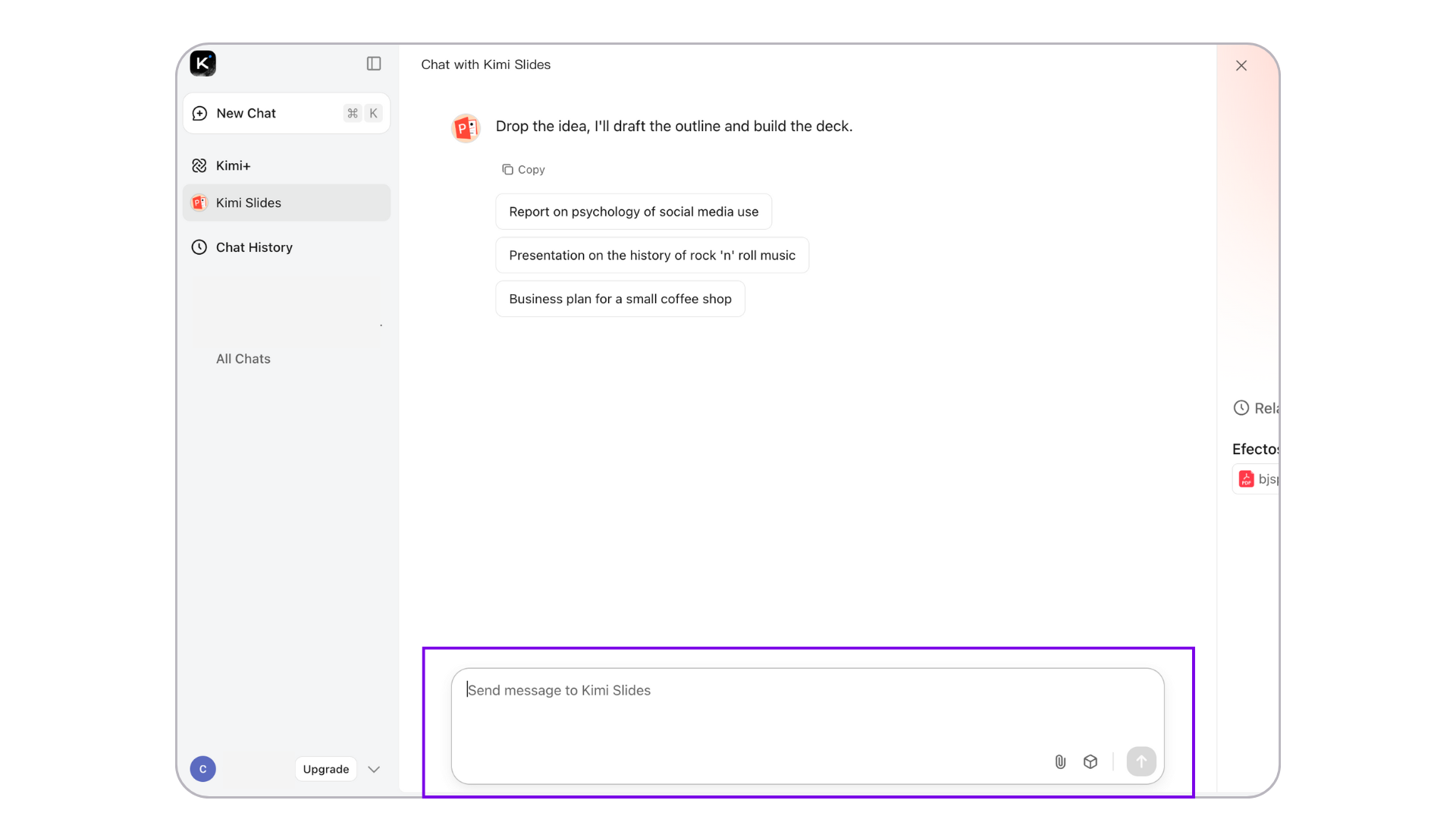 Paso 2: Accede a KIMI AI y comienza la presentación