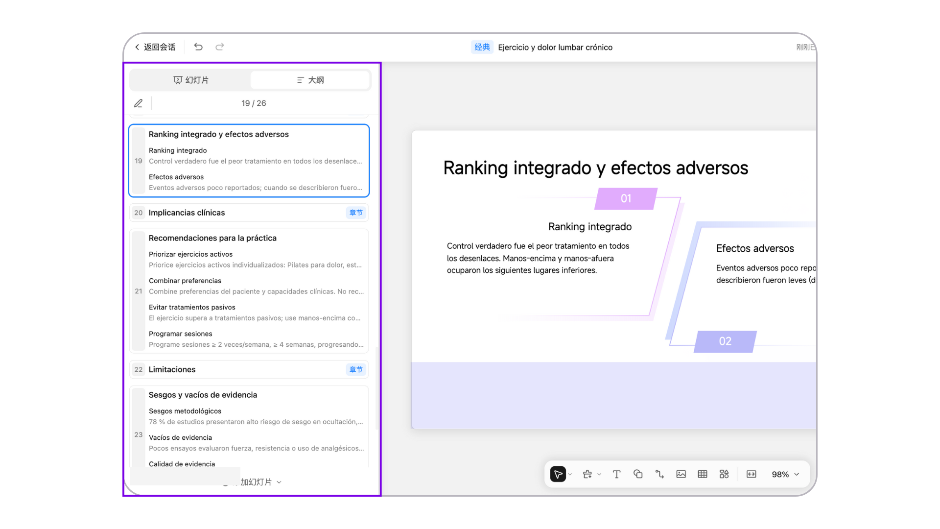 11. Valida todo lo que genere KIMI slides antes de descargar y compartir la presentación con otros profesionales sanitarios o con tus pacientes. Además, debes revisar la legibilidad del texto ya que puedes encontrar fallos ortográficos en el mismo.