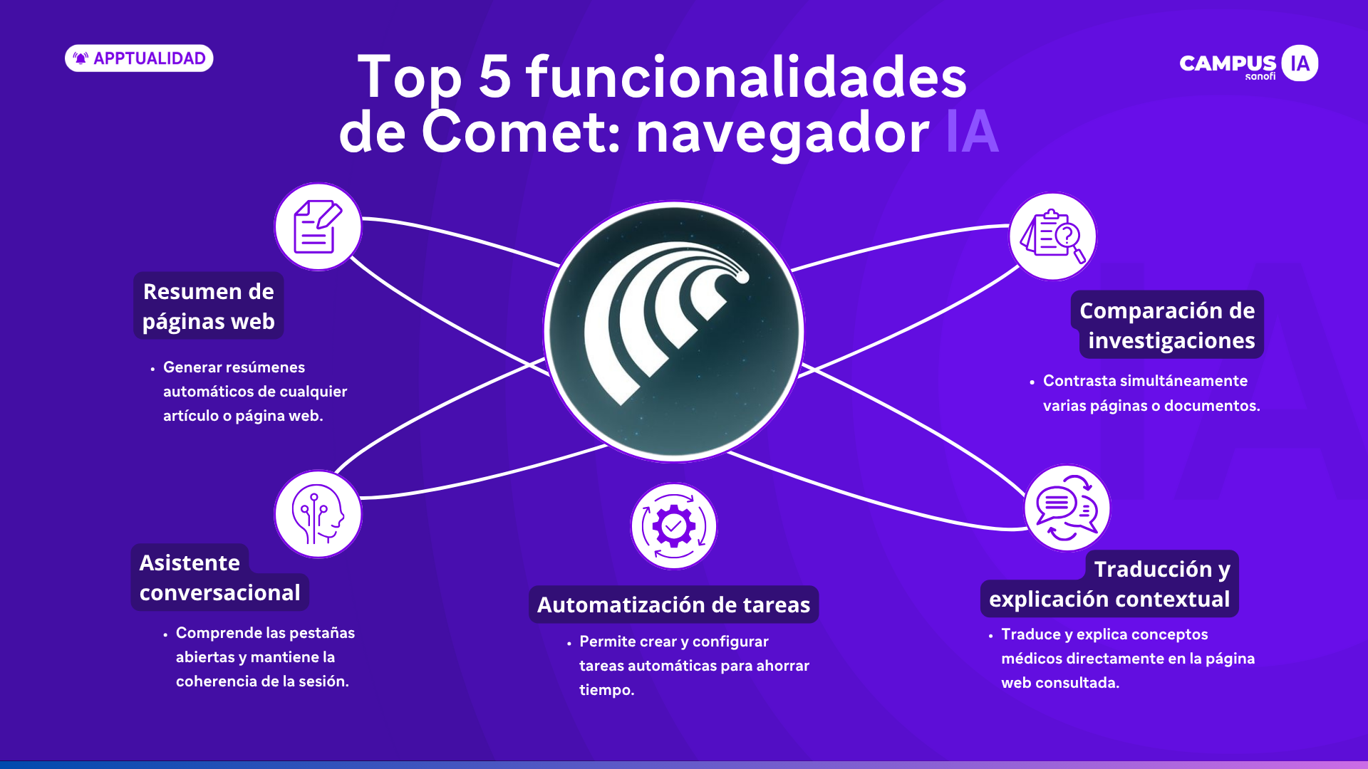 Comet convierte el navegador en un verdadero asistente de trabajo para el ámbito sanitario. Sus funcionalidades de IA no solo simplifican la búsqueda y el análisis de información, sino que también automatizan procesos y mejoran la eficiencia del día a día profesional.
