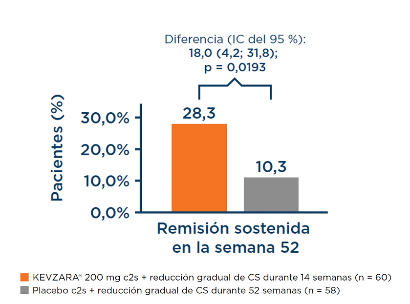 KEVZARA® demostró una remisión sostenida estadísticamente significativa en la semana 521,3