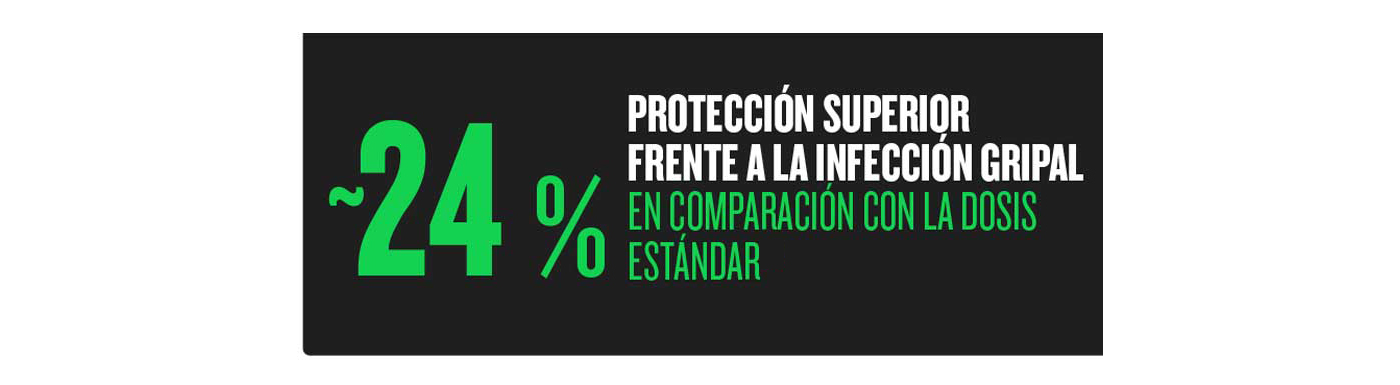 RESULTADOS DE LA HD-TIV: En un ECA en el que participaron 31 803 sujetos, la HD-TIV demostró un 24,2 % (IC 95 %: 9,7 a 36,5) más de protección frente a los casos de gripe confirmados en laboratorio de cualquier cepa circulante en comparación con la vacuna antigripal de dosis estándar.