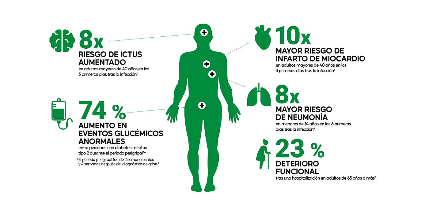 La gripe es un virus impredecible que puede causar complicaciones graves en los principales órganos1-4.