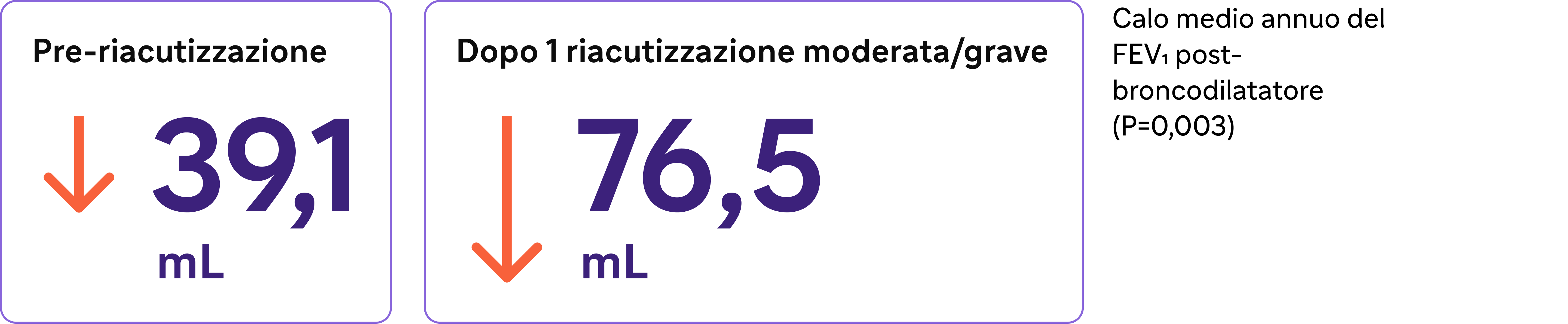 edeclino del FEV1 dopo una singola esacerbazione moderata-grave. Basato su un'analisi retrospettiva dei dati di 586 pazienti con BPCO moderata-grave.5
