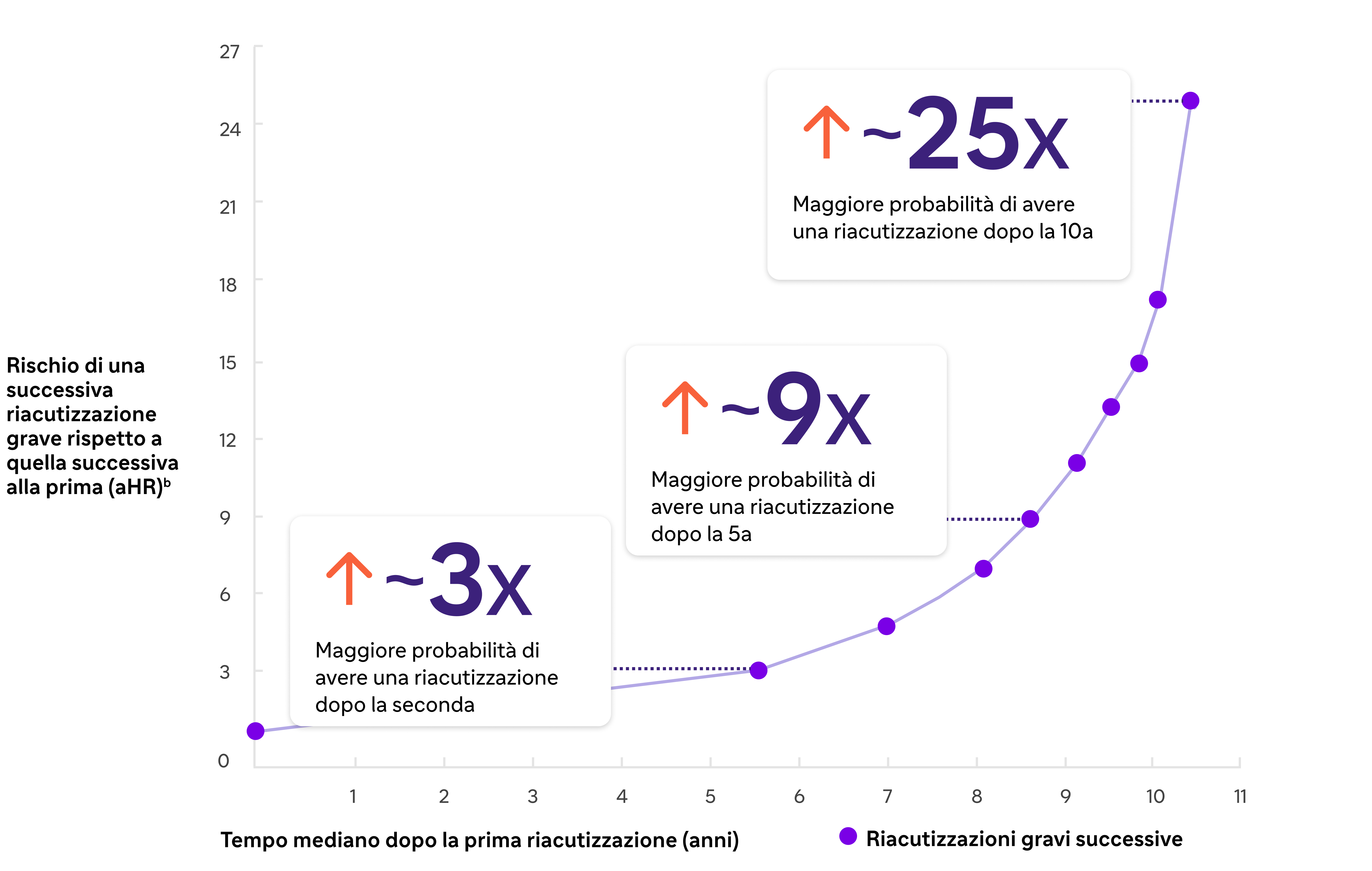 Il rischio di riacutizzazione aumenta dopo ogni riacutizzazione 1