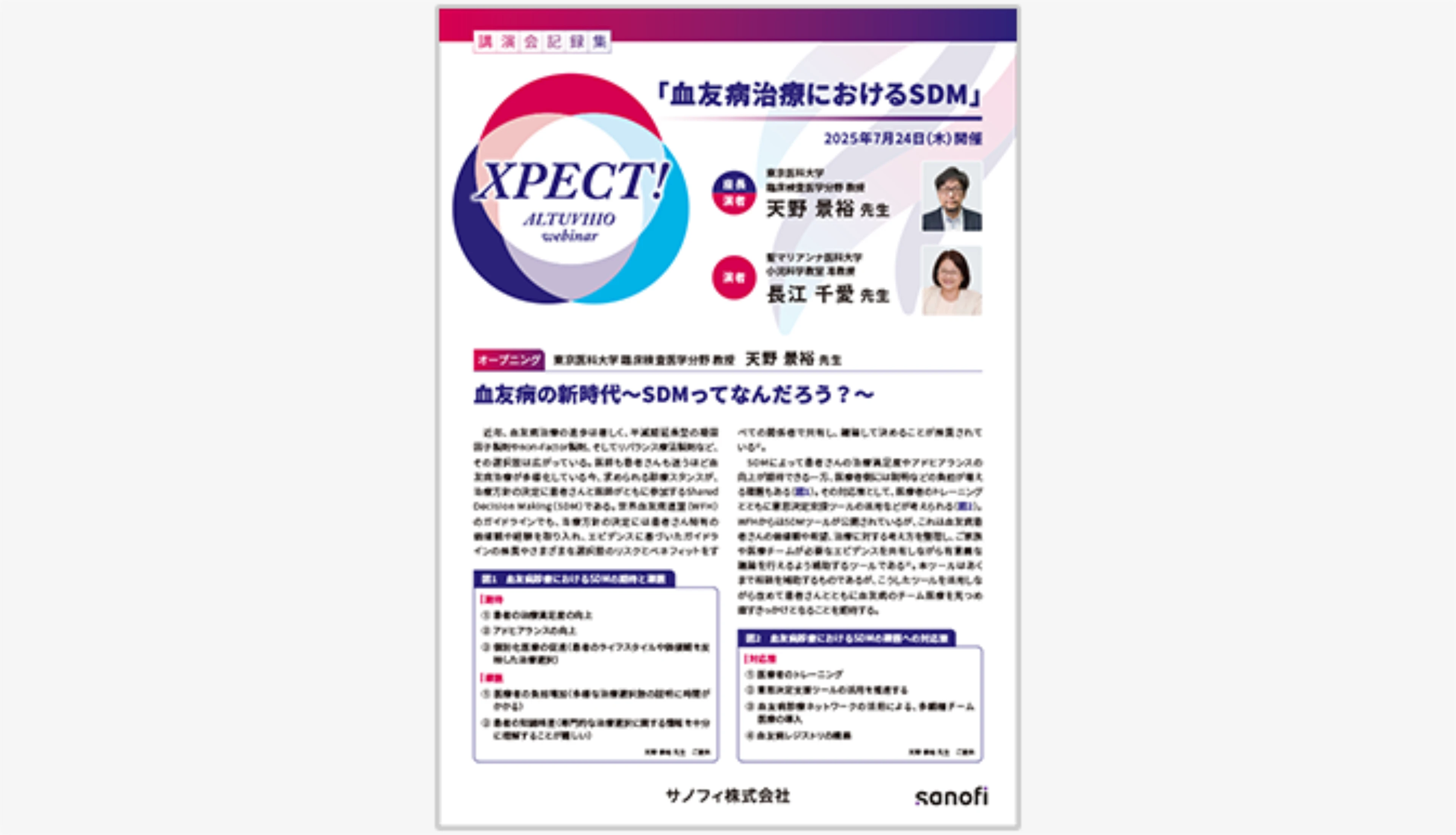 新規血友病A治療薬であるオルツビーオについて、臨床試験結果や実経験を基にオルツビーオの適応や使い方、注意すべき点など、5名のエキスパートの先生方にご討議いただきました。