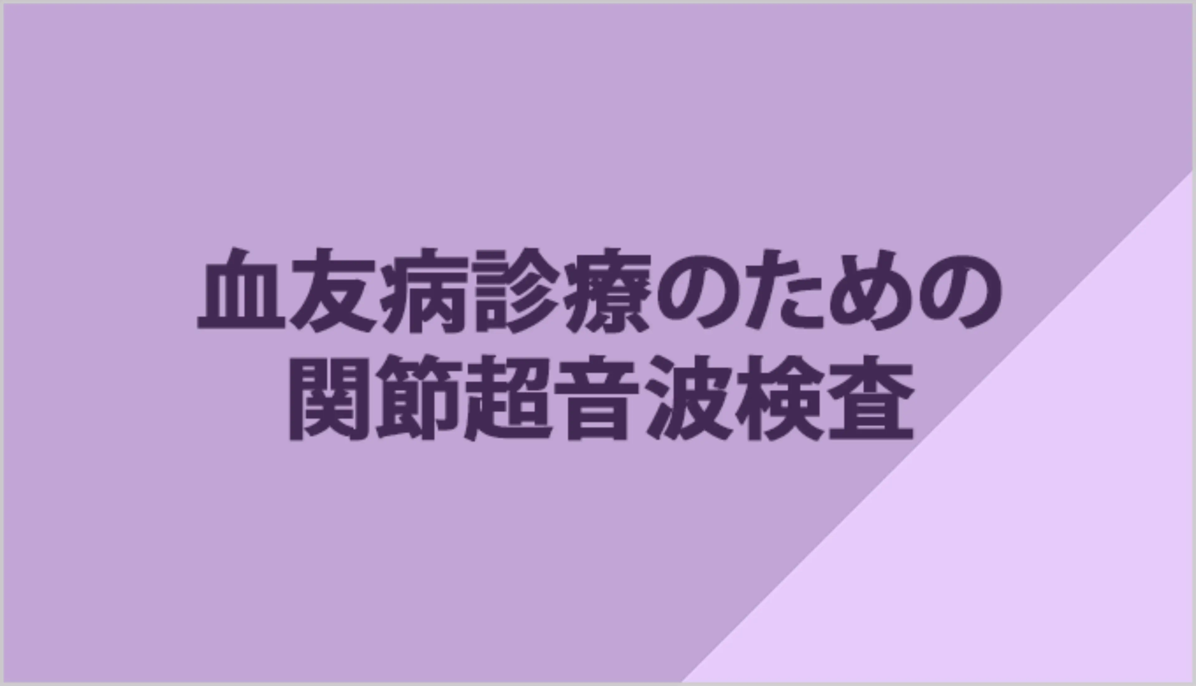 血友病患者さんに対して行う関節超音波検査は、関節内の出血、滑膜肥厚、軟骨・骨の変化を早期に捉えるための重要な検査です。