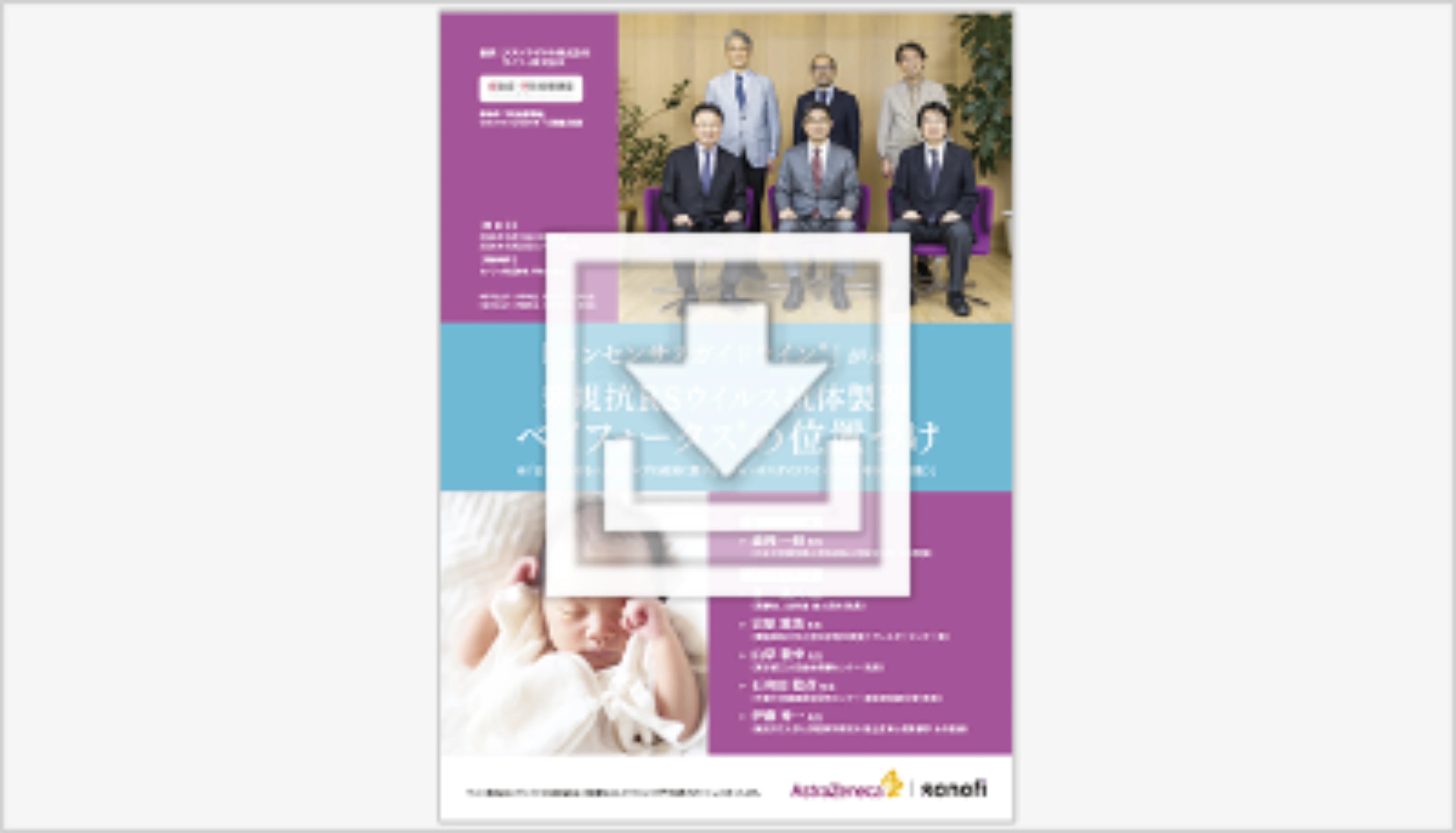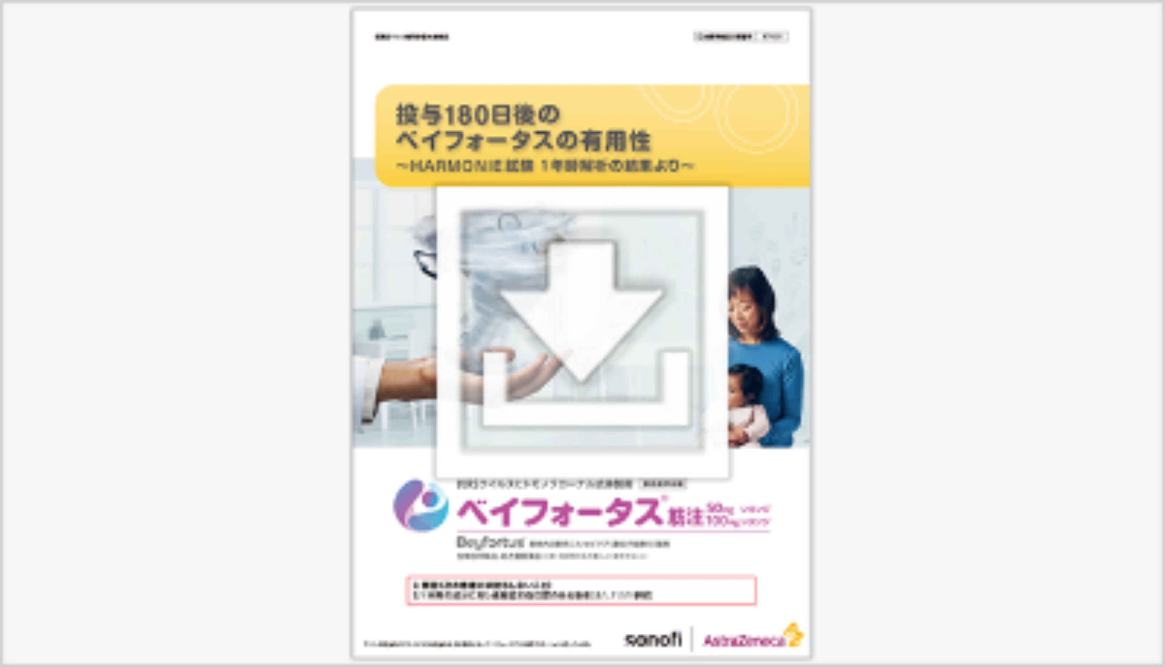 保護者に説明する際にお使いいただけるA4サイズ両面の下敷きです。表面にはRSウイルス感染症、裏面にはベイフォータスについて(特徴、投与スケジュール、副作用)記載されています。