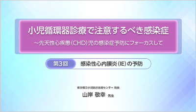 本シリーズでは小児循環器がご専門の山岸 敬幸 先生(東京都小児総合医療センター 院長)より、CHDにおける感染予防の重要性、特に注意が必要な循環器疾患についてご解説いただきました。