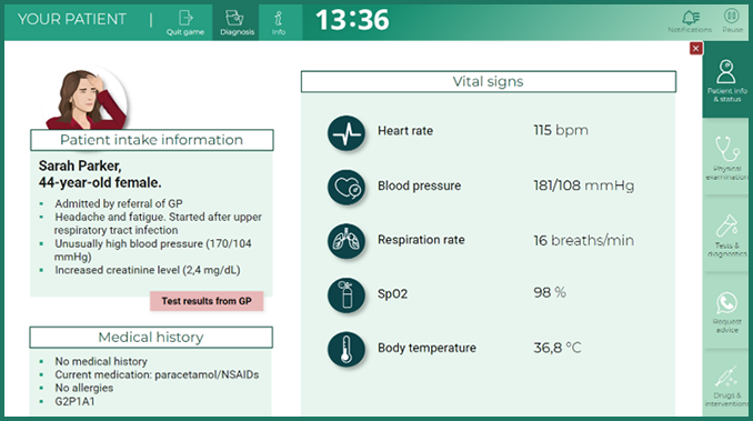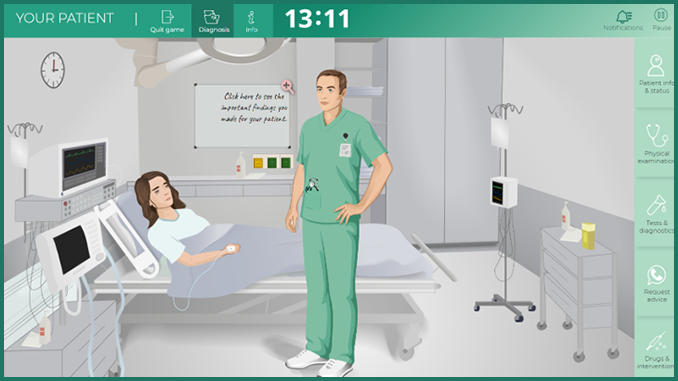 - プレイヤーは救急部門に所属する医師として、急性期の血液疾患に典型的な症状を抱えて来院する患者を診断し、適切な処置を実行することが求められます。