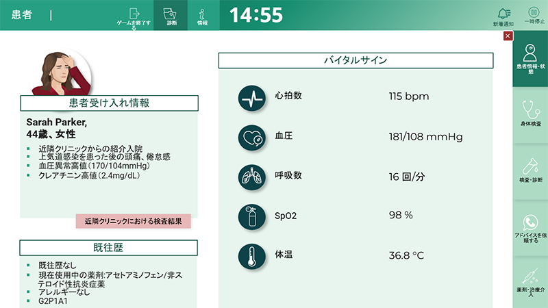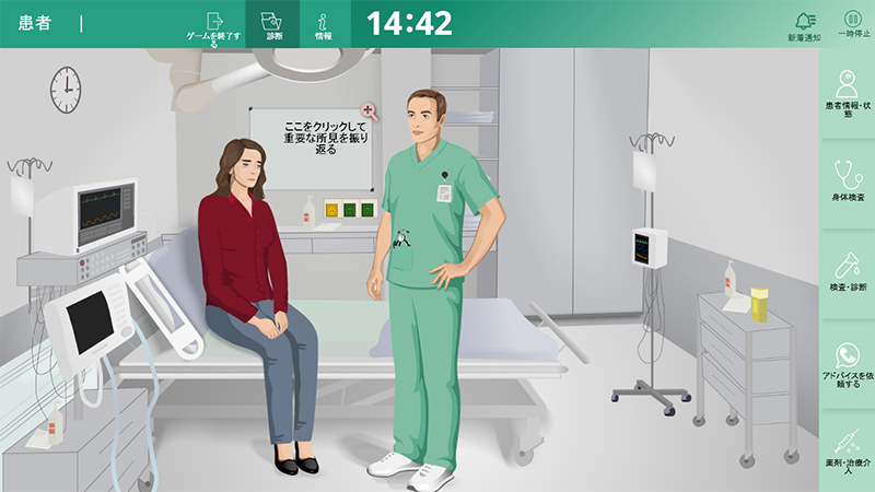 ・プレイヤーは、急性期の血液疾患に典型的な症状を抱えて来院する患者を診断し、適切な処置を実行することが求められます。