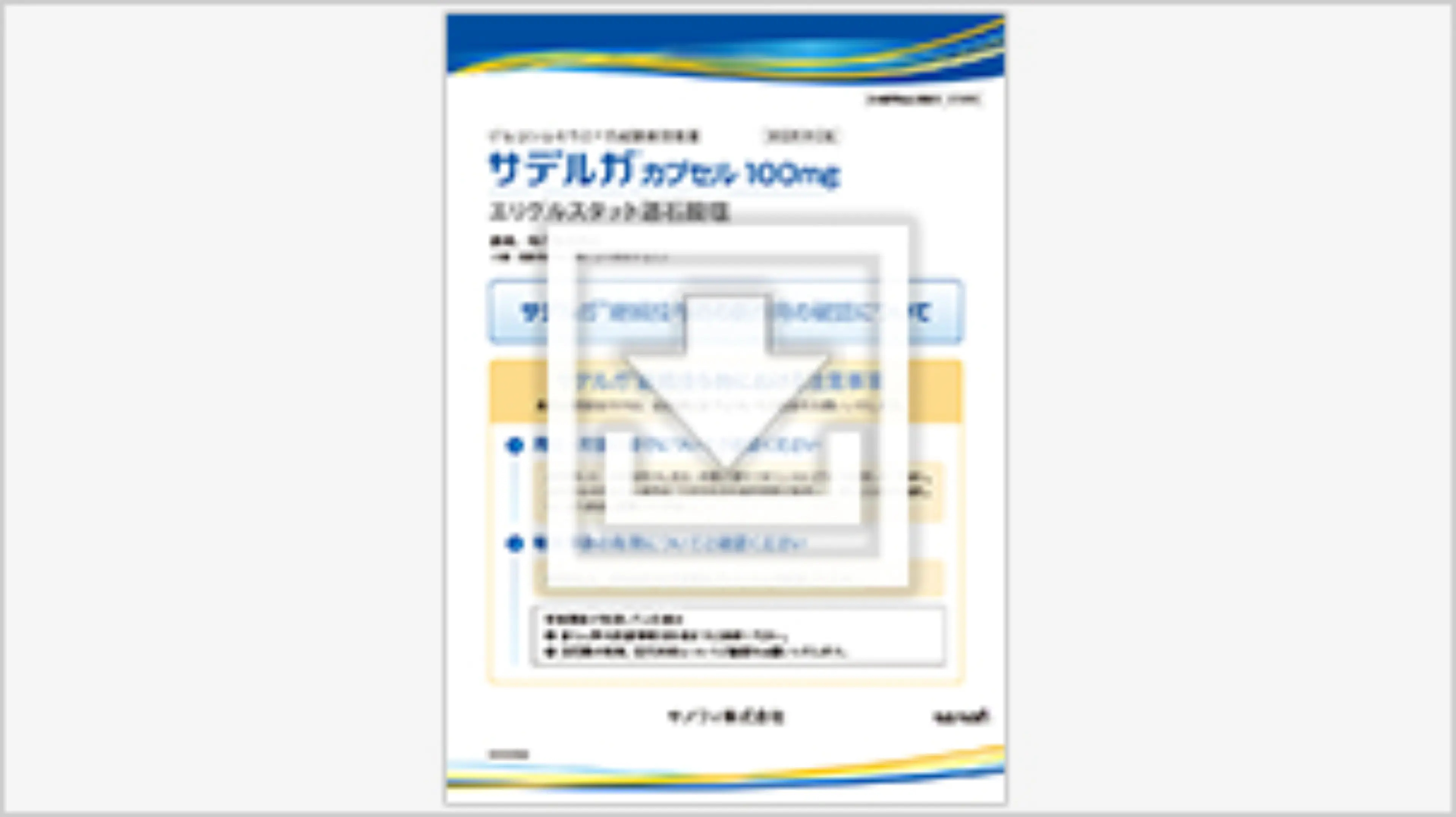 本資材は、ゴーシェ病でサデルガを服用される患者さまおよびご家族向けに、服用方法や注意点について分かりやすく解説しております。