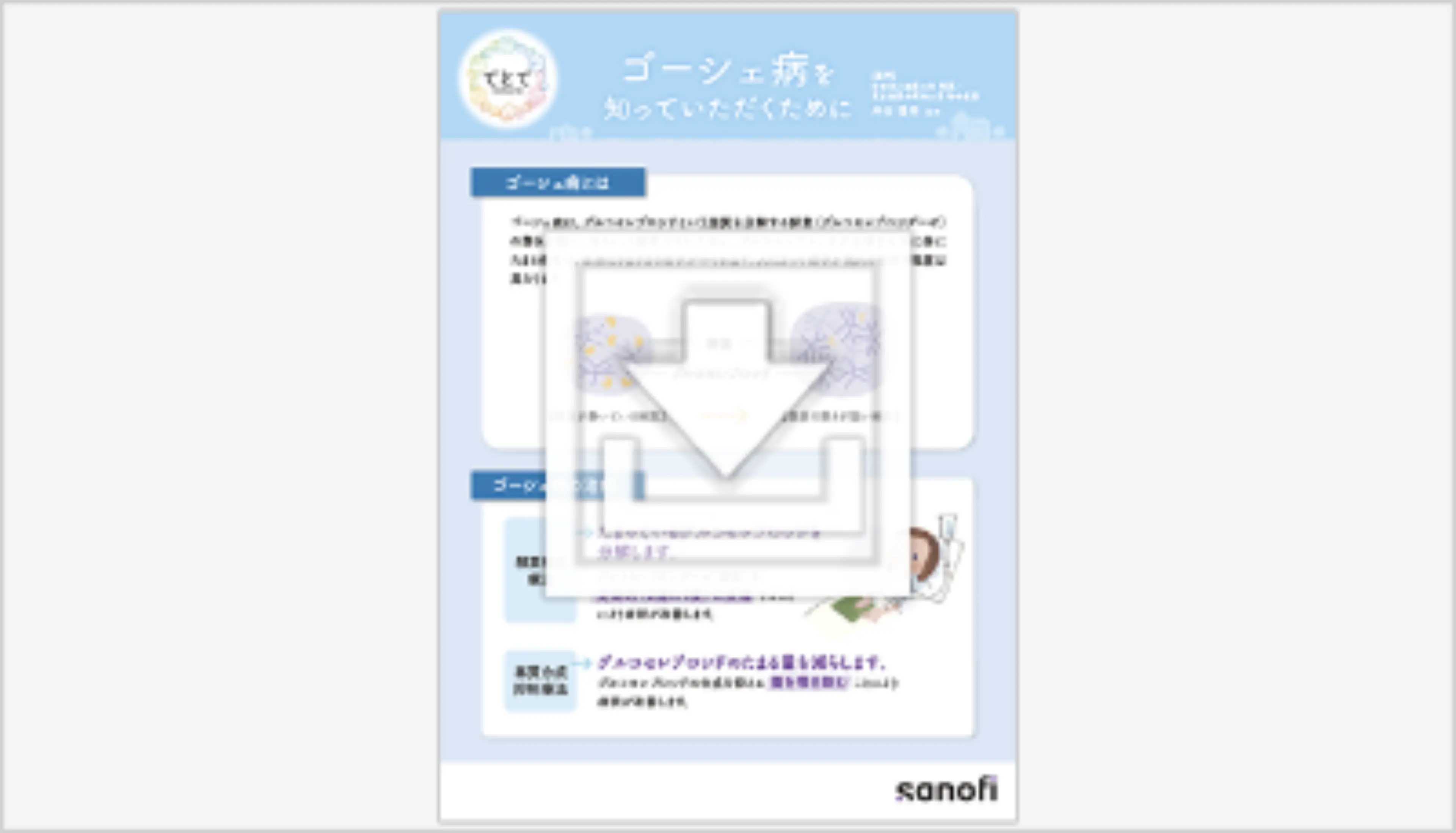 本資材は、ゴーシェ病について、疾患から診断、治療について、分かりやすく解説をしている資材です。ゴーシェ病の患者さんおよびご家族の方向けにお役立ていただけます。