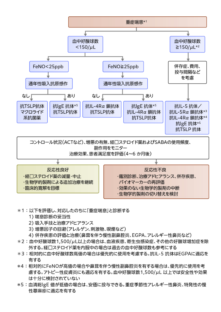 「喘息診療実践ガイドライン2024」1)重症患者に対する生物学的製剤の検討基準