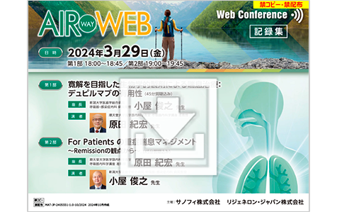 2024年3月29日に開催したAIR WAY WEBの記録集です。順天堂大学医学部の原田先生と新潟大学医歯学総合病院の小屋先生が、Remissionを目指した喘息治療をテーマにご講演くださいました。