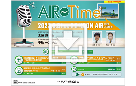 2023年6月14日に開催したAIR WAY TIMEの記録集です。名古屋市立大学大学院の新実先生と東京女子医科大学の近藤先生が、喀痰や息切れ症状をテーマにご講演くださいました。