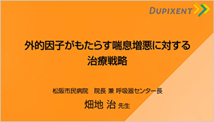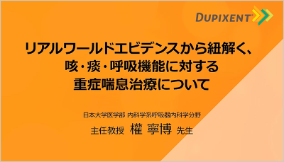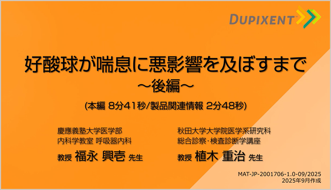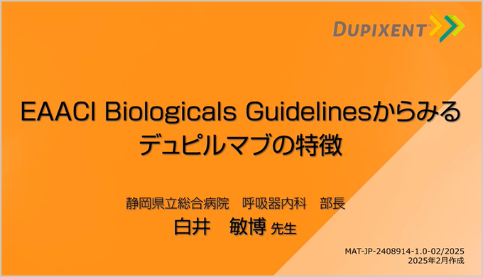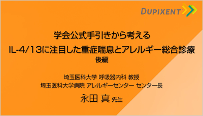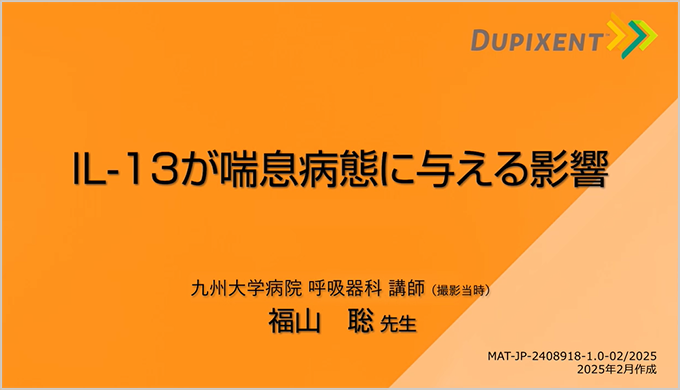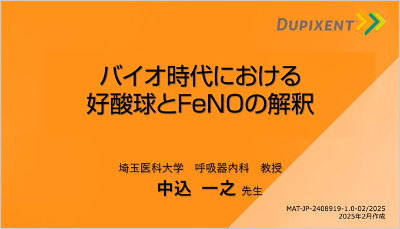 全て見る最適症例メカニズム・ガイドライン等診療サポート最適症例 メカニズム・ガイドライン等学会公式手引きから考えるIL-4/13に注目した重症喘息とアレルギー総合診療 前編最適症例 メカニズム・ガイドライン等学会公式手引きから考えるIL-4/13に注目した重症喘息とアレルギー総合診療 後編最適症例 メカニズム・ガイドライン等FeNOを踏まえた重症喘息治療戦略最適症例 メカニズム・ガイドライン等リアルワールドエビデンスから紐解く咳・痰・呼吸機能に対する重症喘息治療について最適症例 メカニズム・ガイドライン等Type2炎症バイオマーカーによるデュピクセントの有効性の予測メカニズム・ガイドライン等喘息予防・管理ガイドライン2024が導く最新の喘息治療(前編)メカニズム・ガイドライン等喘息予防・管理ガイドライン2024が導く最新の喘息治療(後編)最適症例 メカニズム・ガイドライン等CTとCASA-Qでみる気道粘液過分泌および気道過敏性への影響最適症例 メカニズム・ガイドライン等好酸球性喘息に対するデュピクセントのリアルワールドエビデンス最適症例 メカニズム・ガイドライン等生物学的製剤の選択を考慮する患者の状態とは最適症例 メカニズム・ガイドライン等重症喘息における気道粘液栓とデュピルマブ最適症例 メカニズム・ガイドライン等IL-4/13と咳・痰・息切れ症状の関係最適症例 メカニズム・ガイドライン等外的因子がもたらす喘息増悪に対する治療戦略メカニズム・ガイドライン等GINA2022の主なポイント ~重症喘息を中心に~メカニズム・ガイドライン等気管支喘息における2型炎症の中心(Th2ILC2)を抑制する意義とは?メカニズム・ガイドライン等2型炎症におけるCentral&Direct~IL-4/13の役割とは?~メカニズム・ガイドライン等EAACI Biologicals Guidelinesからみるデュピルマブの特徴メカニズム・ガイドライン等バイオ時代における好酸球とFeNOの解釈最適症例 メカニズム・ガイドライン等IL-13が喘息病態に与える影響メカニズム・ガイドライン等好酸球が喘息に悪影響を及ぼすまで 〜前編〜メカニズム・ガイドライン等好酸球が喘息に悪影響を及ぼすまで 〜後編〜