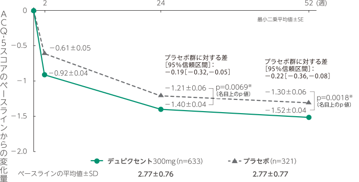 - スクリーニング来院時及び無作為化割付け来院時(無作為化割付け前)のACQ-5スコアが1.5以上