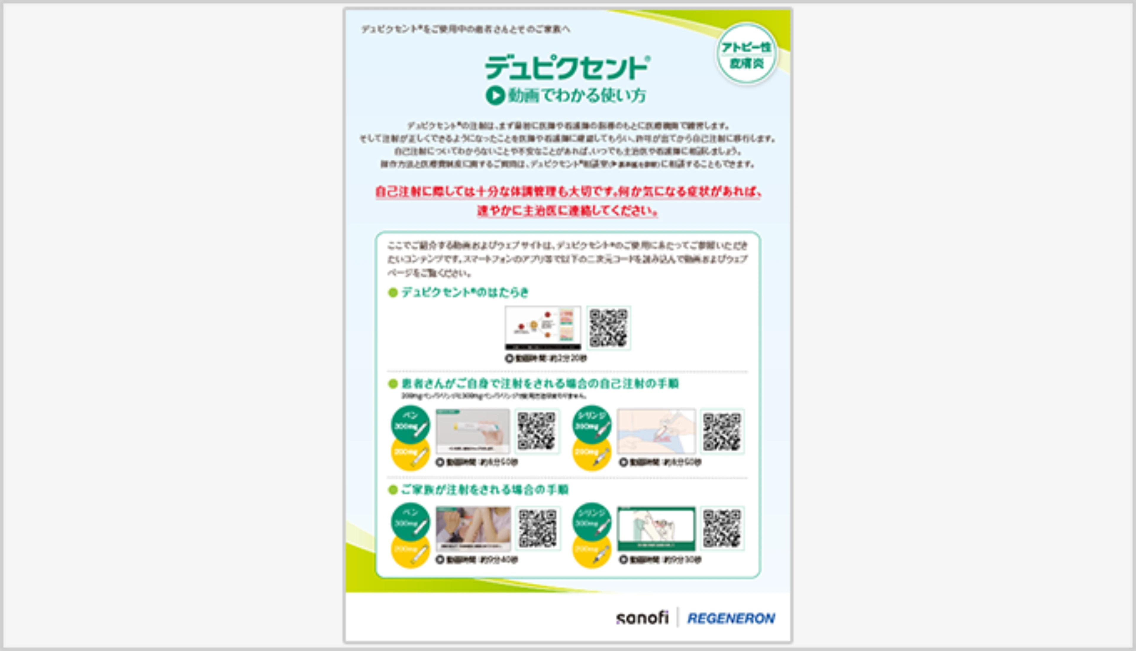 デュピクセントのご使用にあたって(アトピー性皮膚炎・患者指導用資材)