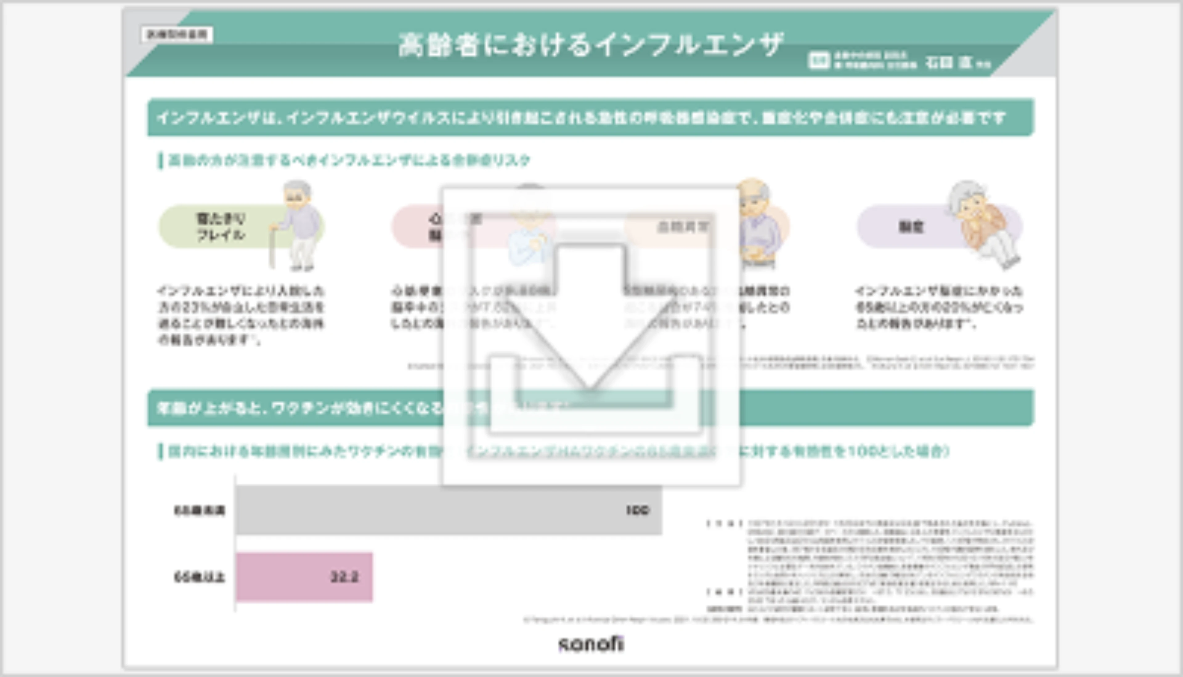 患者さん向けに、高齢者のインフルエンザ予防について、わかりやすくご紹介している資材になります。