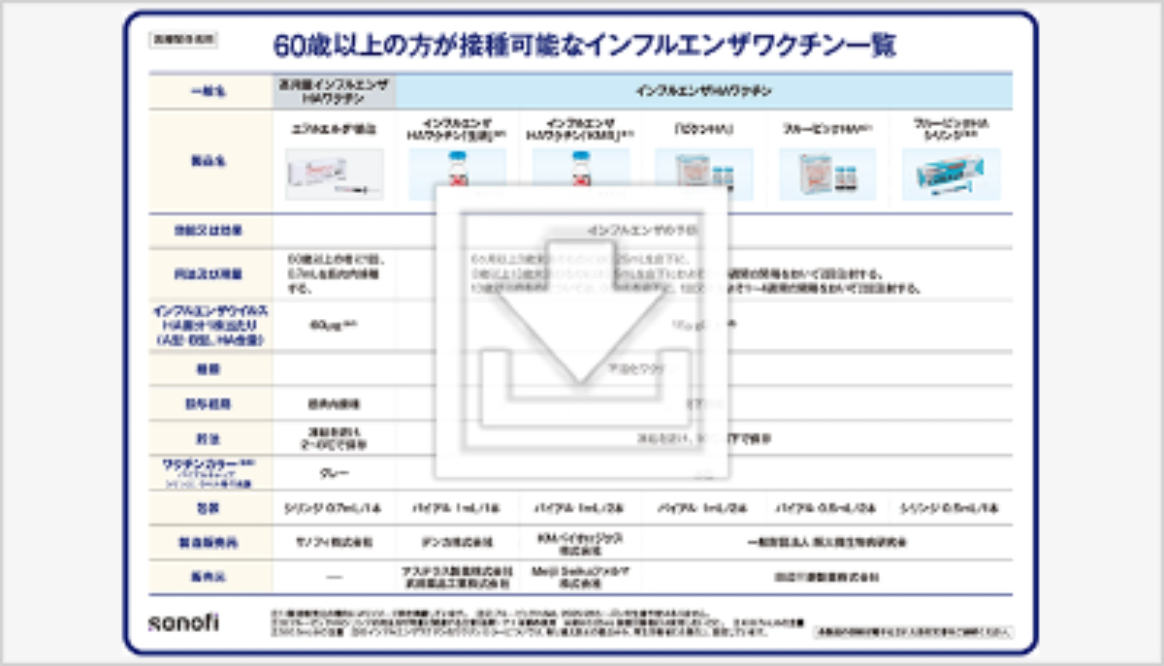 インフルエンザワクチン製品の情報をまとめた一覧表になります。