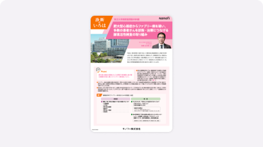 ファブリー病の早期診断に役たつ事例紹介診断のいろは 東北大学 循環器内科 (2022/11/07) 今回は東北大学 循環器内科におけるファブリー病が疑われる患者さんに対する検査から診断までの院内体制について東北大学 循環器内科 後岡先生からご紹介をいただいております。ダウンロード診断のいろは 千葉県こども病院 (2022/11/04) 今回は、千葉県こども病院 村山 圭 先生よりファブリー病の早期診断に向けた施設の取り組みや地域連携によるファブリー病の診断からフォロー体制も含めた包括的な医療体制についてもご紹介いただいております。ダウンロード診断のいろは 奈良県立医科大学附属病院 (2022/10/27) 今回は奈良県立医科大学 地域医療学講座 赤井 靖宏 先生より、ファブリー病の早期診断に向けた院内連携の取り組みや地域での疾患啓発ついてもご紹介をいただいております。ダウンロード診断のいろは 熊本大学病院 (2022/10/26) 今回は熊本大学 小児科におけるファブリー病が疑われる患者さんに対する検査から診断までの院内体制について熊本大学 小児科教授である中村先生からご紹介をいただいております。ダウンロード診断のいろは 藤田医科大学病院 (2022/04/01) 愛知県の新生児スクリーニングでファブリー病陽性と確認された新生児のご家族を無症状の段階からフォローアップし、治療を行うほか、臨床症状からファブリー病が疑われた腎機能障害患者さんの問診及び診察、酵素活性検査、腎生検までの診断の流れを確立している藤田医科大学腎臓内科の取り組みをご紹介いたします。ダウンロード戻る