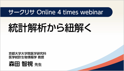京都大学 森田智視先生にプロ ペンシティスコア・マッチング やMAIC等、臨床絵試験を読み 解くための統計解析についてご 解説いただきました。