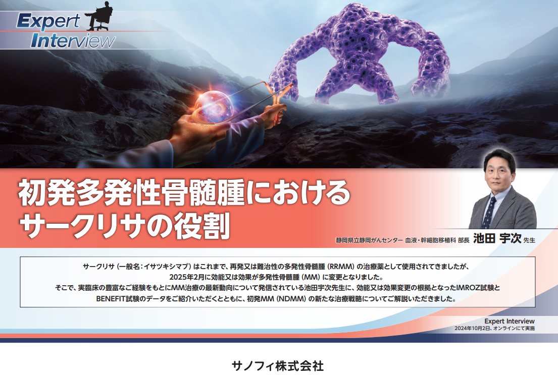 実臨床の豊富なご経験をもとにMM治療の最新動向について発信されている池田 宇次 先生に、IMROZ試験やBENEFIT試験、NDMMの新たな治療戦略についてご解説いただきました。