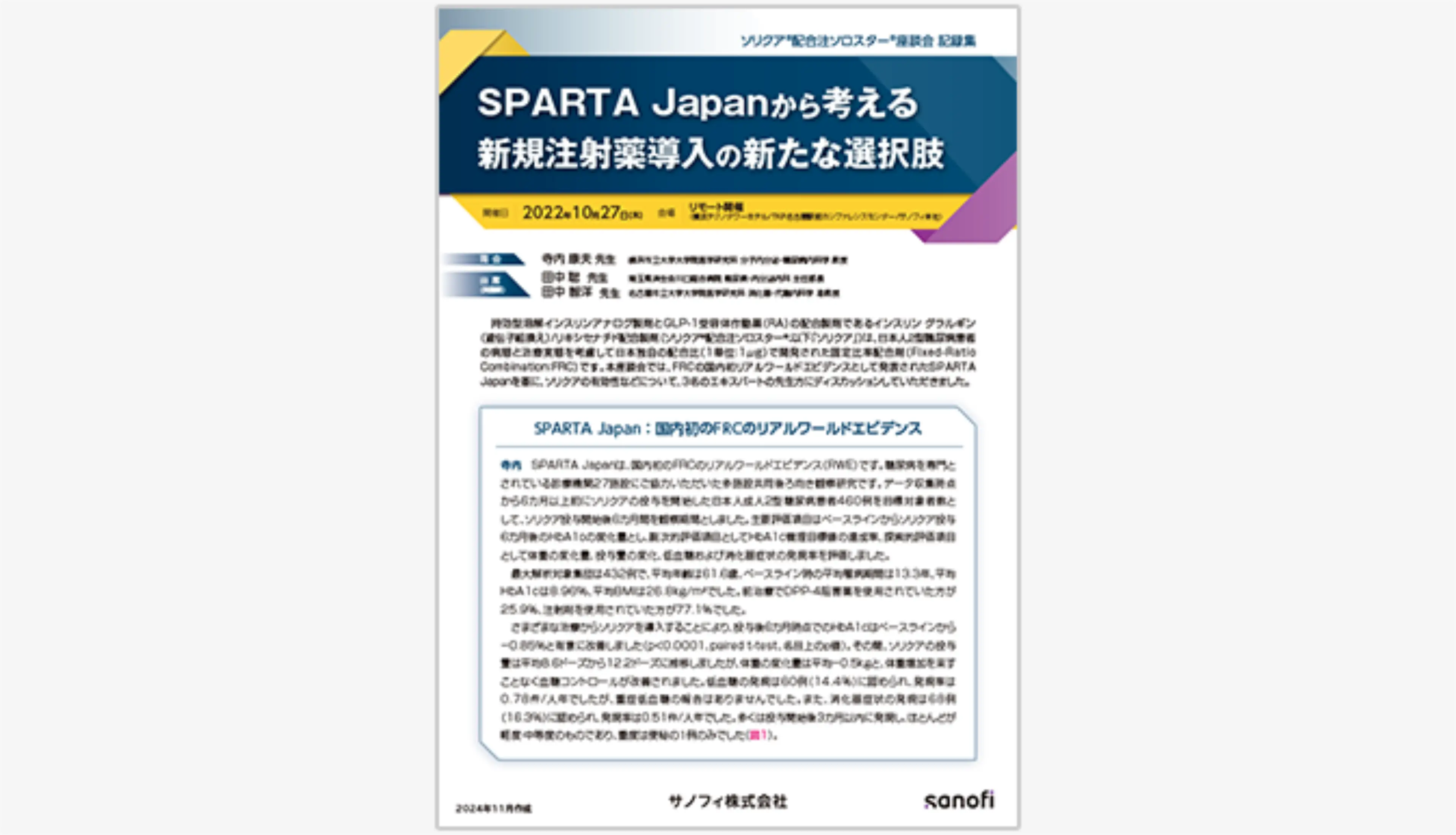 FRC(Fixed-ratio combination)製剤としてのソリクアの特徴や新たに登場したエビデンスを中心に、ご紹介させていただきます。