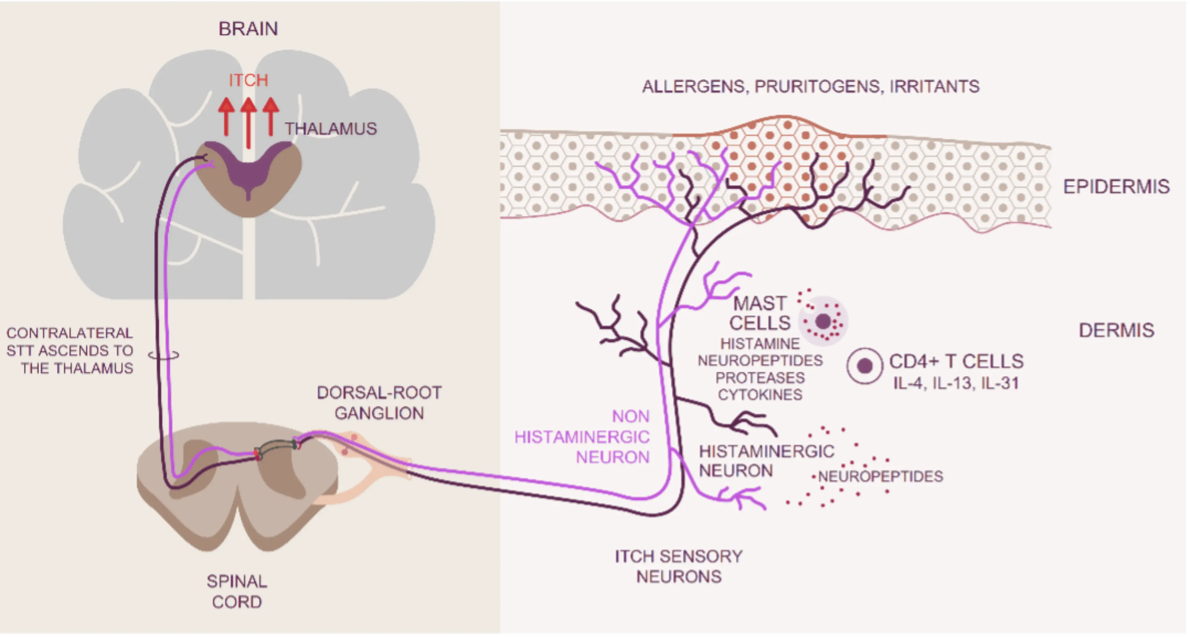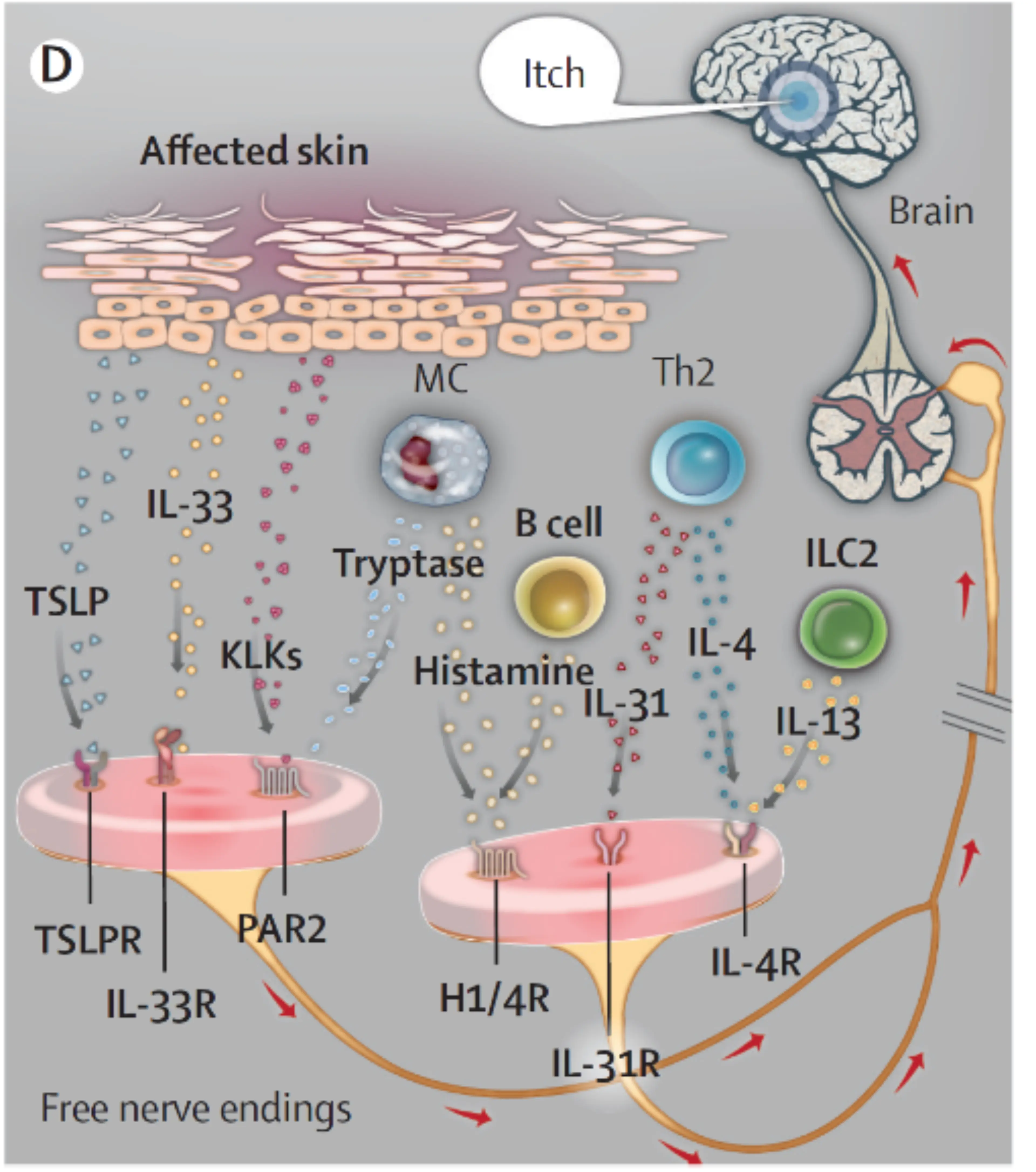 • T2 cytokines (IL-4, IL-13, TSLP and IL-31) contribute to itch1