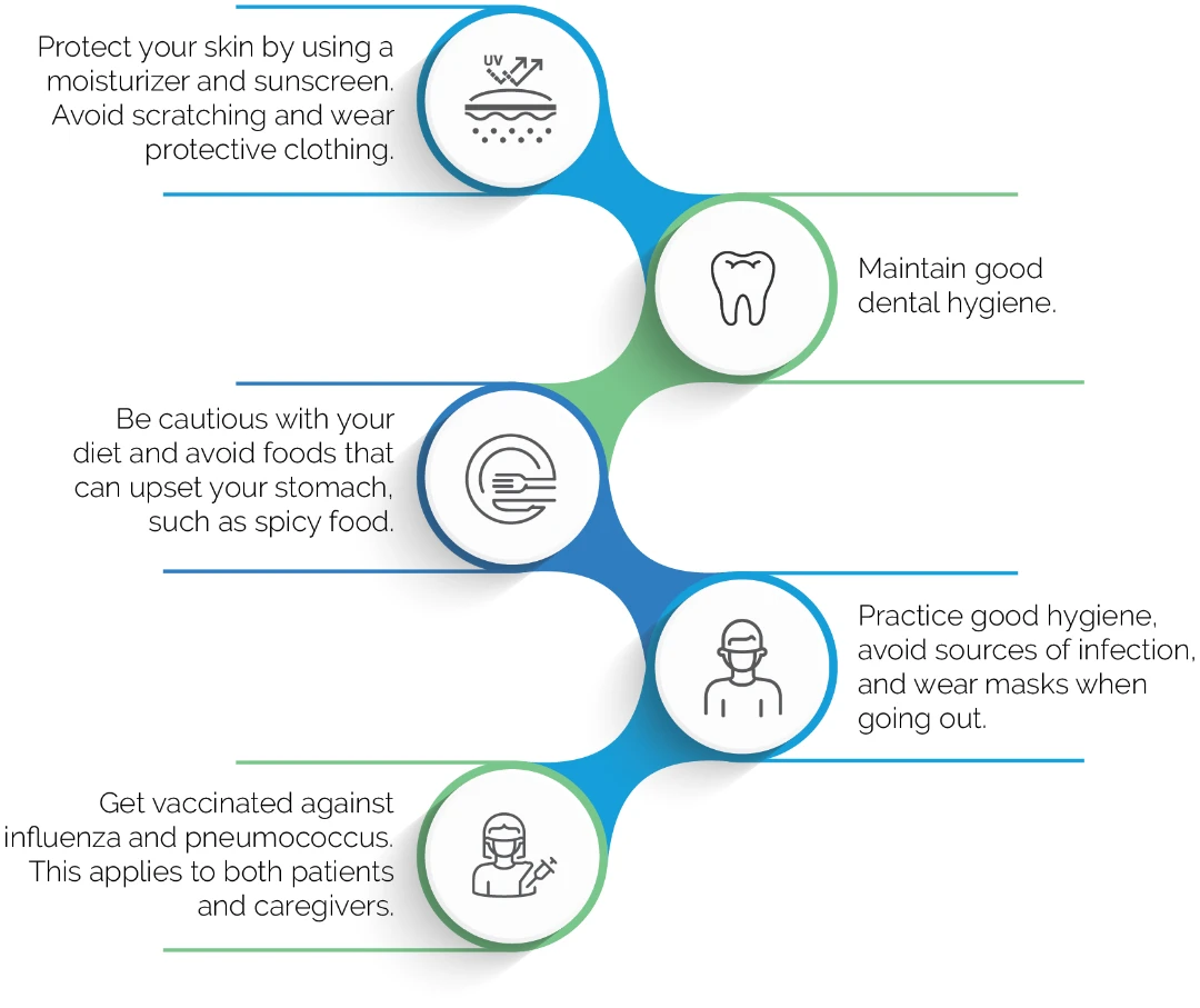 cGVHD can be prevented by protecting yourself from acute GVHD. Here are some preventive measures:6