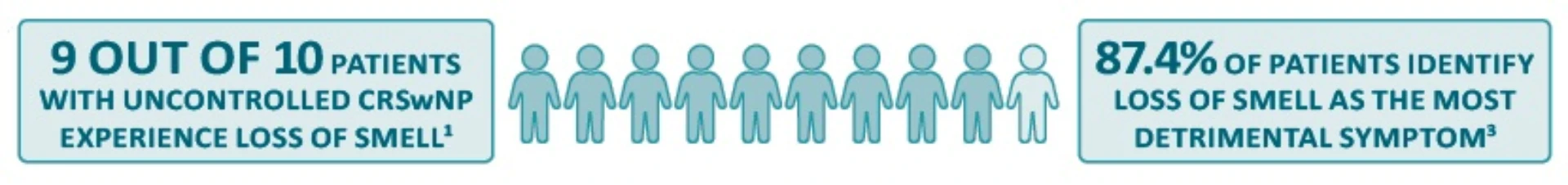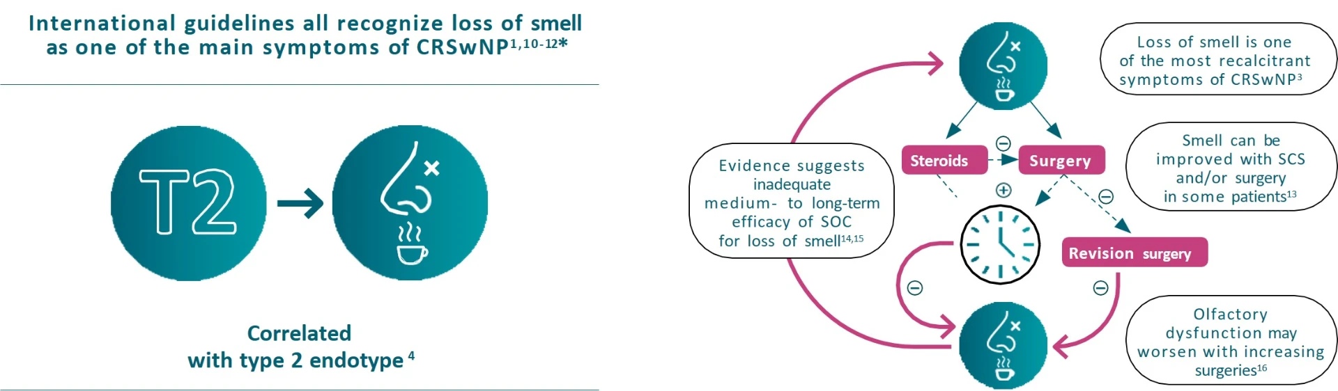 *Clinical consequences are listed in descending order based on patient questionnaire: “Please mark the most important items affecting your health.” †Loss of smell is included in CRSwNP diagnostic criteria