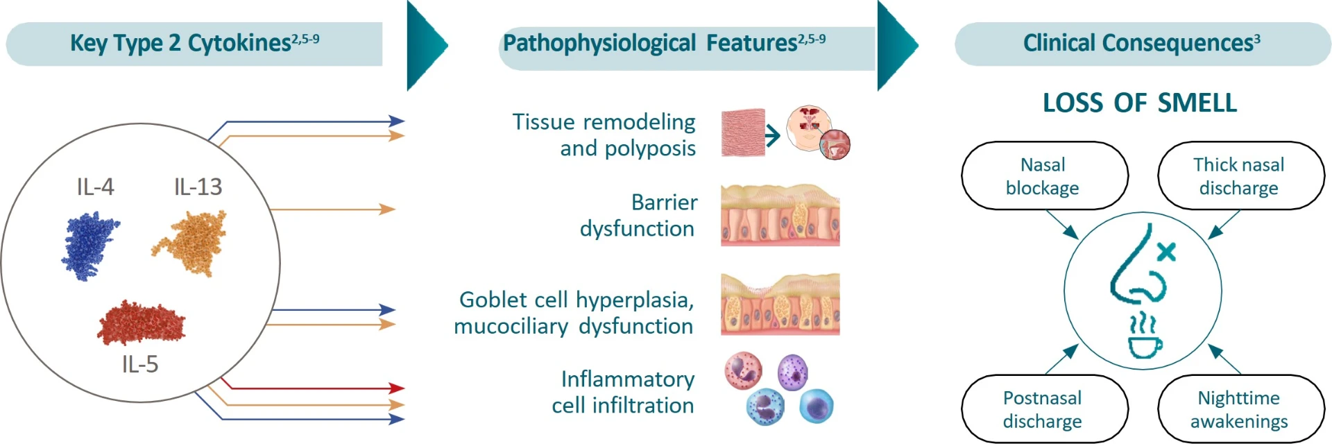 1. Fokkens WJ, et al. Rhinology. 2020;58(suppl S29):1-464. 2. Schleimer RP. Annu Rev Pathol. 2017;12:331-357. 3. Mullol J, et al. J Allergy Clin Immunol Pract. 2022;10(4):1086-1095.e5. 4. Stevens WW, et al. J Allergy Clin Immunol Pract. 2019;7(8):2812-2820. 5. Kato A. Allergol Int. 2015;64(2):121-130. 6. Gandhi NA, et al. Nat Rev Drug Discov. 2016;15(1):35-50. 7. Wise SK, et al. Int Forum Allergy Rhinol. 2014;4(5):361-370. 8. Takabayashi T, et al. J Allergy Clin Immunol. 2013;132(3):584-592.e4. 9. Chalermwatanachai T, et al. Sci Rep. 2018;8(1):7926. 10. Bachert C, et al. J Allergy Clin Immunol. 2021;147(1):29- 36. 11. Orlandi RR, et al. Int Forum Allergy Rhinol. 2021;11(3):213-739. 12. Agache I, et al. Allergy. 2021;76(1):14-44. 13. Rimmer J, et al. Cochrane Database Syst Rev. 2014;(12):CD006991. 14. Bakhshaee M, et al. Iran J Otorhinolaryngol. 2016;28(85):125-134. 15. Van Zele T, et al. J Allergy Clin Immunol. 2010;125:1069-1076.e4. 16. Seys SF, et al. Allergy. 2020;75(11):2867-2878.