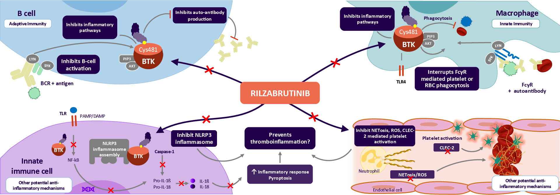 BTK inhibition: Rilzabrutinib acts via multi-immune modulation targeting key aspects of complex immune dysregulation in multiple diseases10