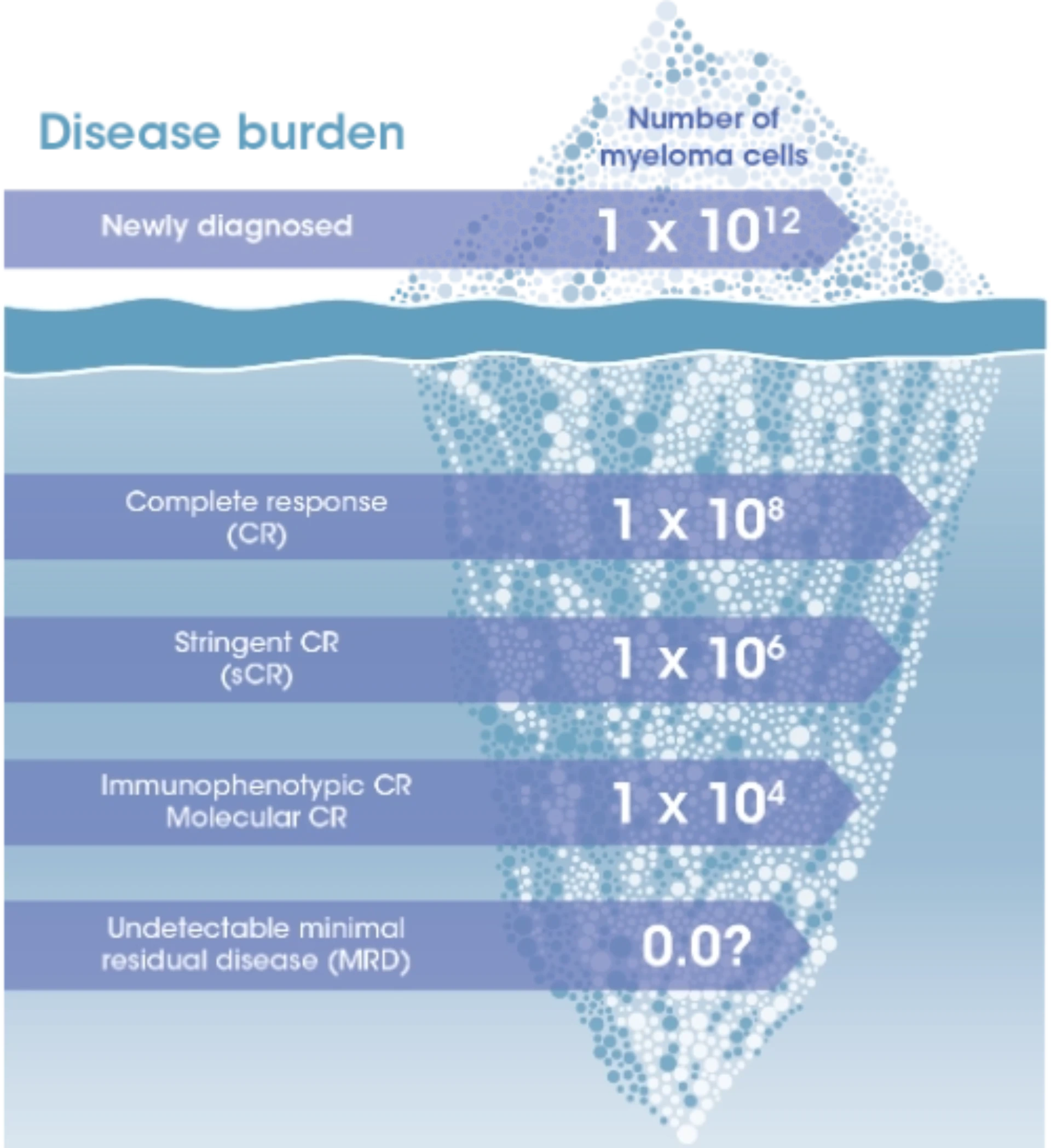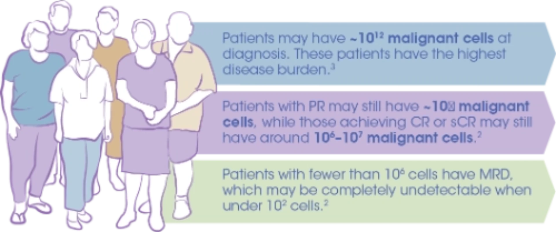 MRD is the low level of malignant cells that persist even after a complete response with myeloma treatment1