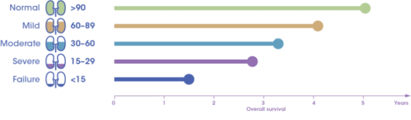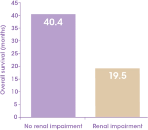 The median survival of patients with renal impairment is approximately half that of patients without renal impairment4