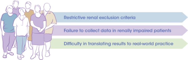 Patients with renal impairment are o en excluded from or underrepresented in clinical trials1