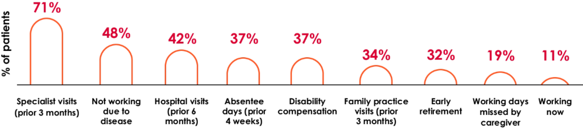 Another consideration is the burden associated with significant productivity loss. The chart below shows the top burdens on patients and caregivers, all of which carry increased direct and indirect costs to patients and society.2