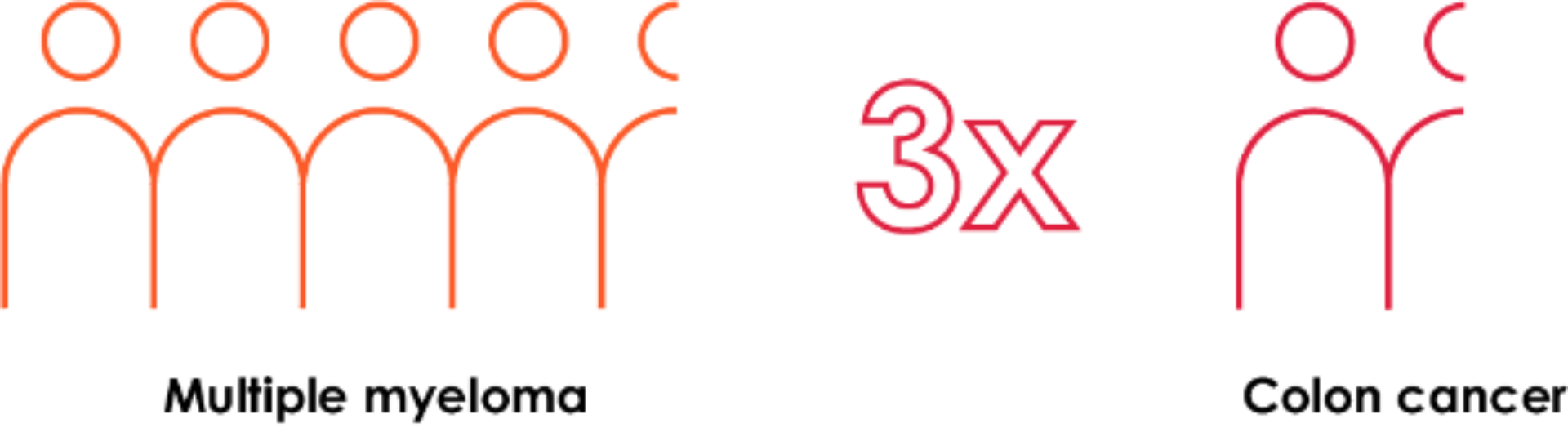 On average the number of multiple myeloma-related hospital admissions per patient is almost 3 times higher than those of colon cancer (4.5 vs 1.4, respectively).