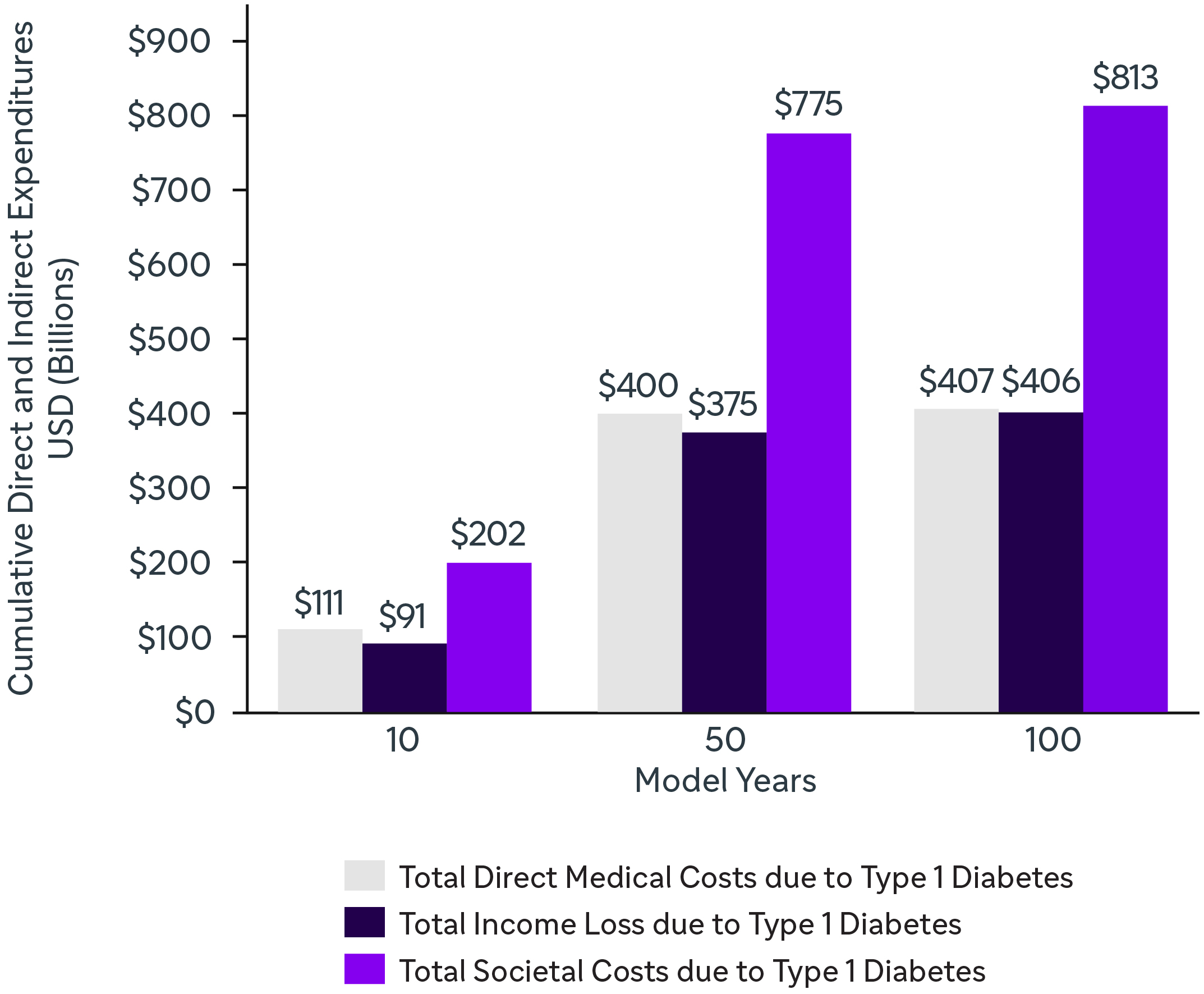 Lifelong management of aT1D drives significant increases in both direct (HCRU) and indirect costs (productivity loss, caregiver burden).5