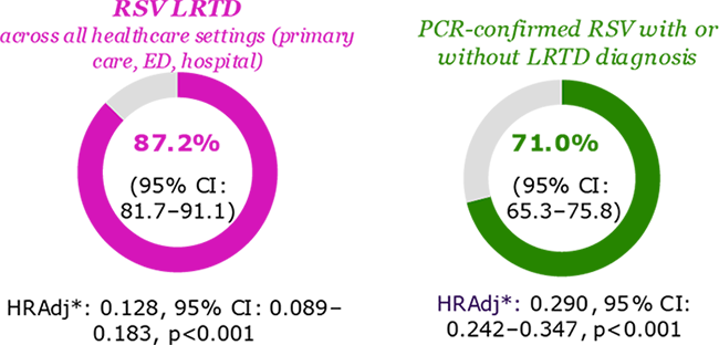 Among nirsevimab recipients who did experience an RSV LRTD episode, the mean number of medical encounters was significantly lower than among infants who had not received RSV prevention
