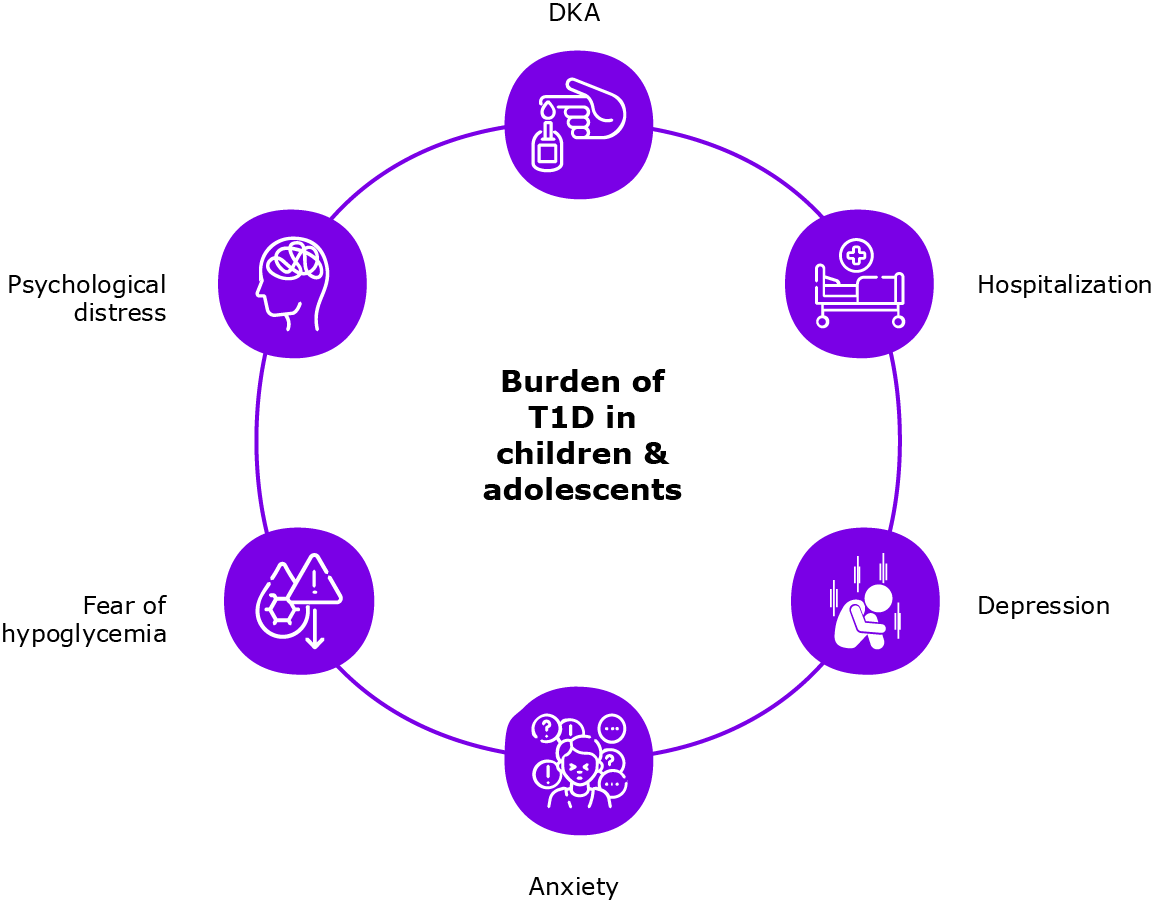 The most common type of diabetes in childhood and adolescence is immune-mediated.3 Children with autoimmune T1D face three times higher hospitalization rates than their healthy peers and they are more prone to depression, anxiety, psychological distress, and eating disorders.2 Long-term glycemic control is often suboptimal, with fear of hypoglycemia being a major limiting factor.2