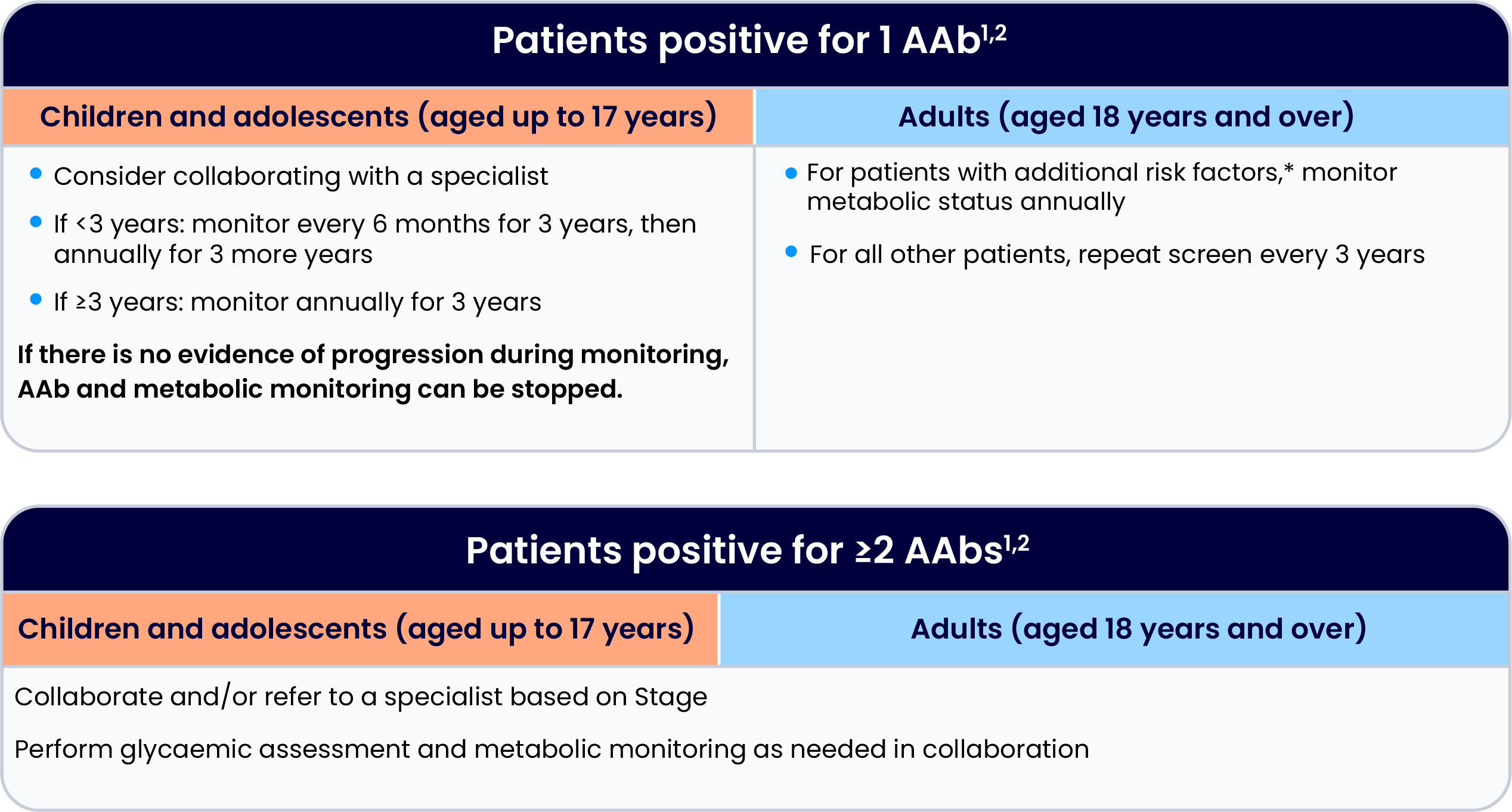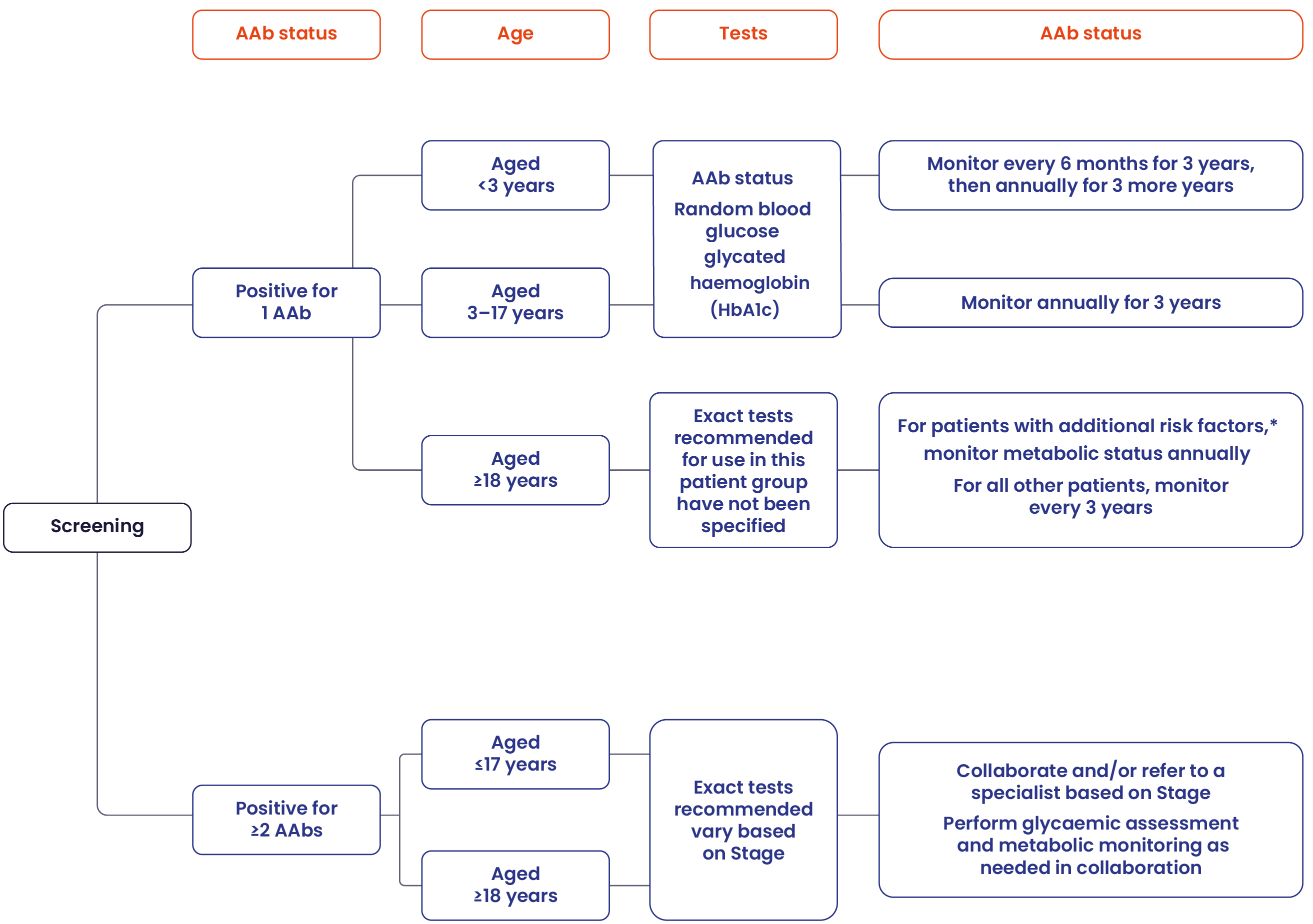 *Additional risk includes one or more of the following: first-degree relative with T1D, elevated genetic risk for T1D if tested, dysglycaemia (e.g. impaired fasting glucose or impaired glucose tolerance), or history of stress hyperglycaemia.2